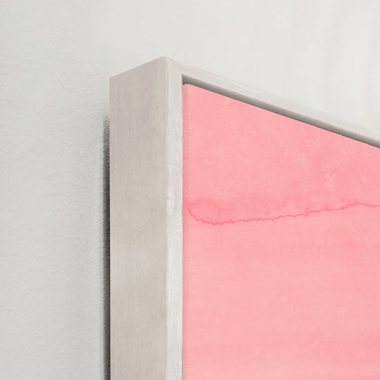 - Set in a white floater frame.