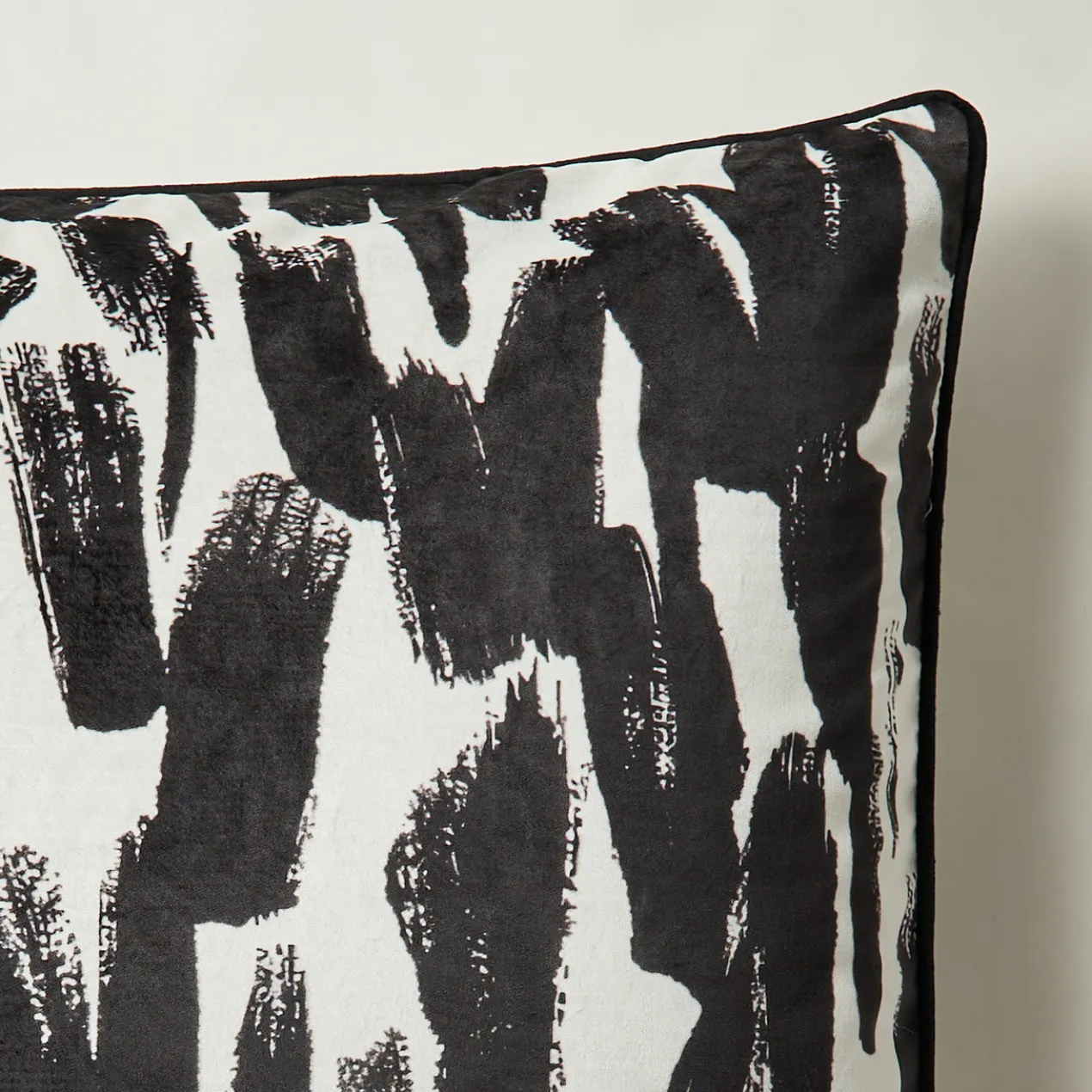 Perfect for updating your space with a bold pop of pattern, this pillow is adorned with an artful balck and white abstract design on both side with black cord trim.