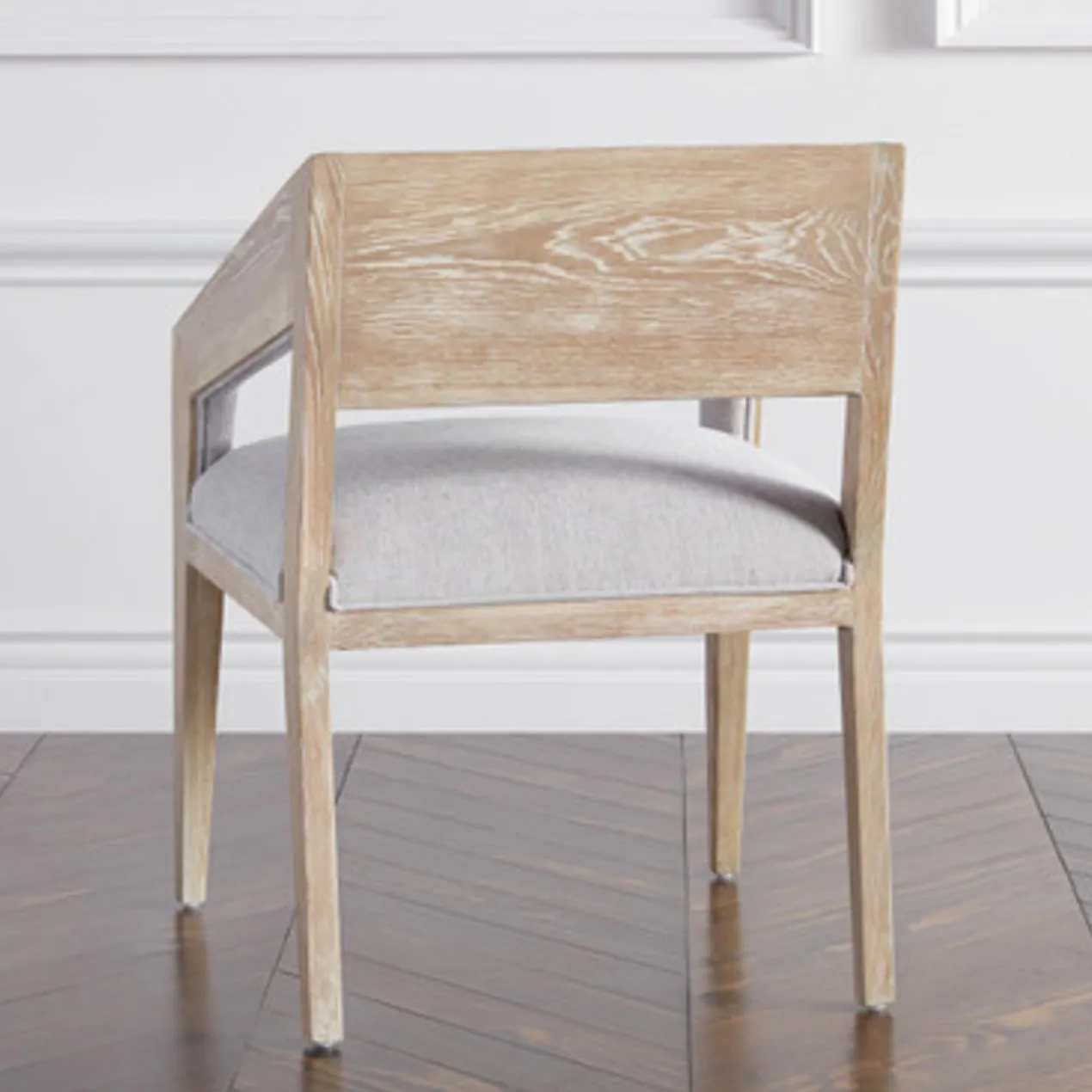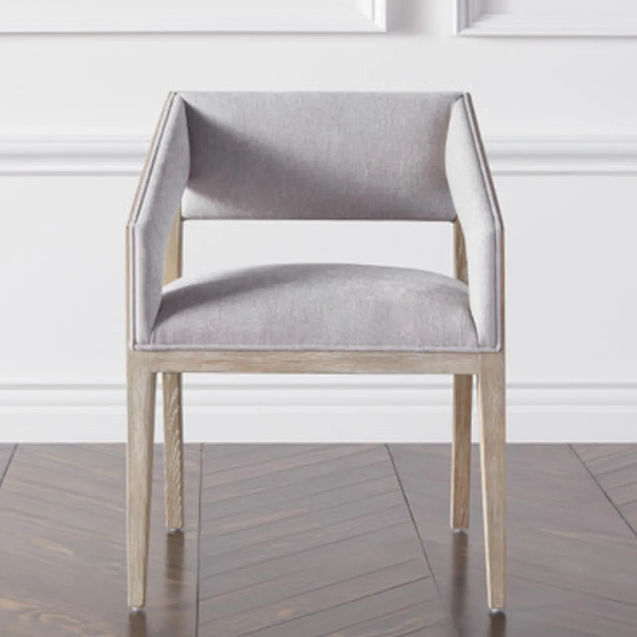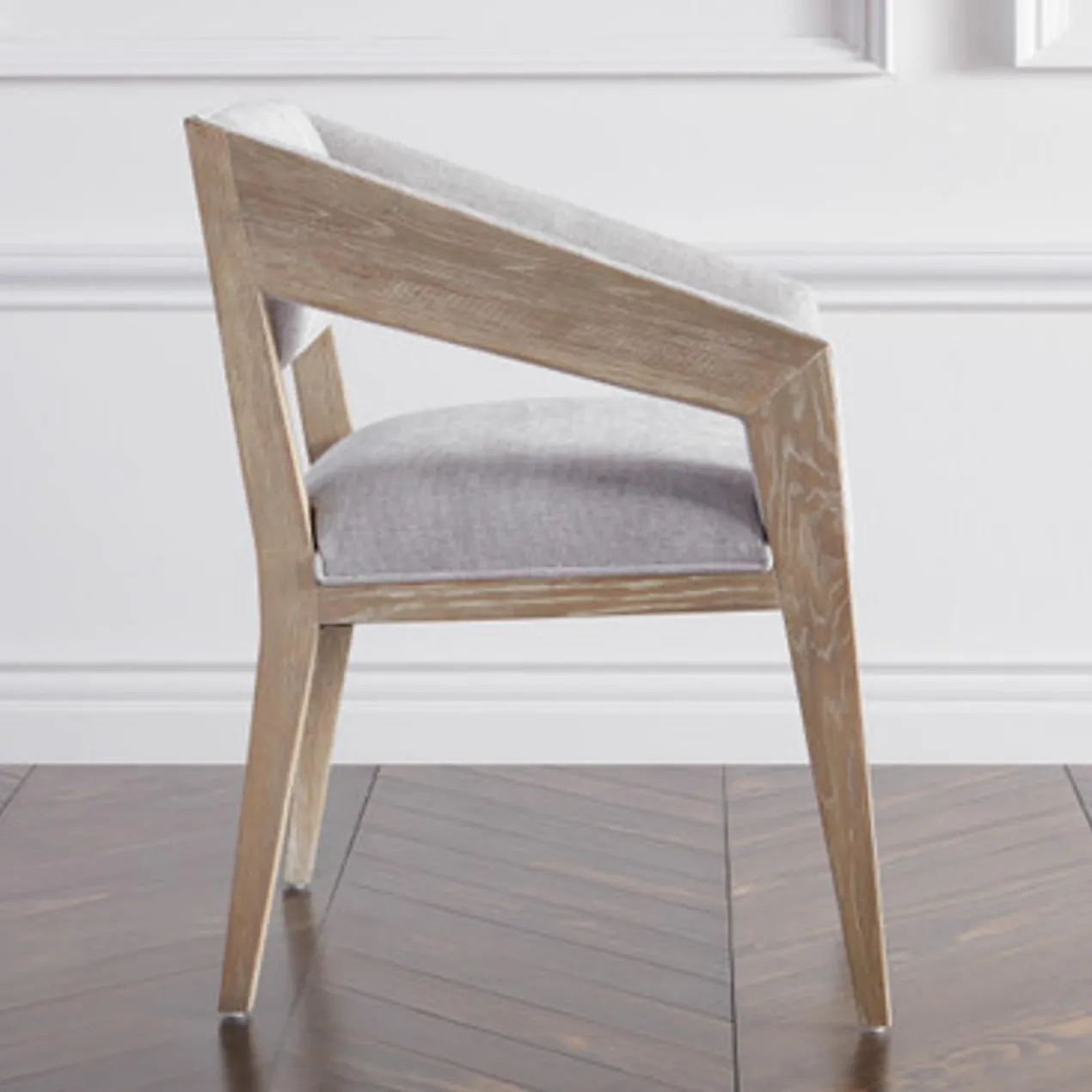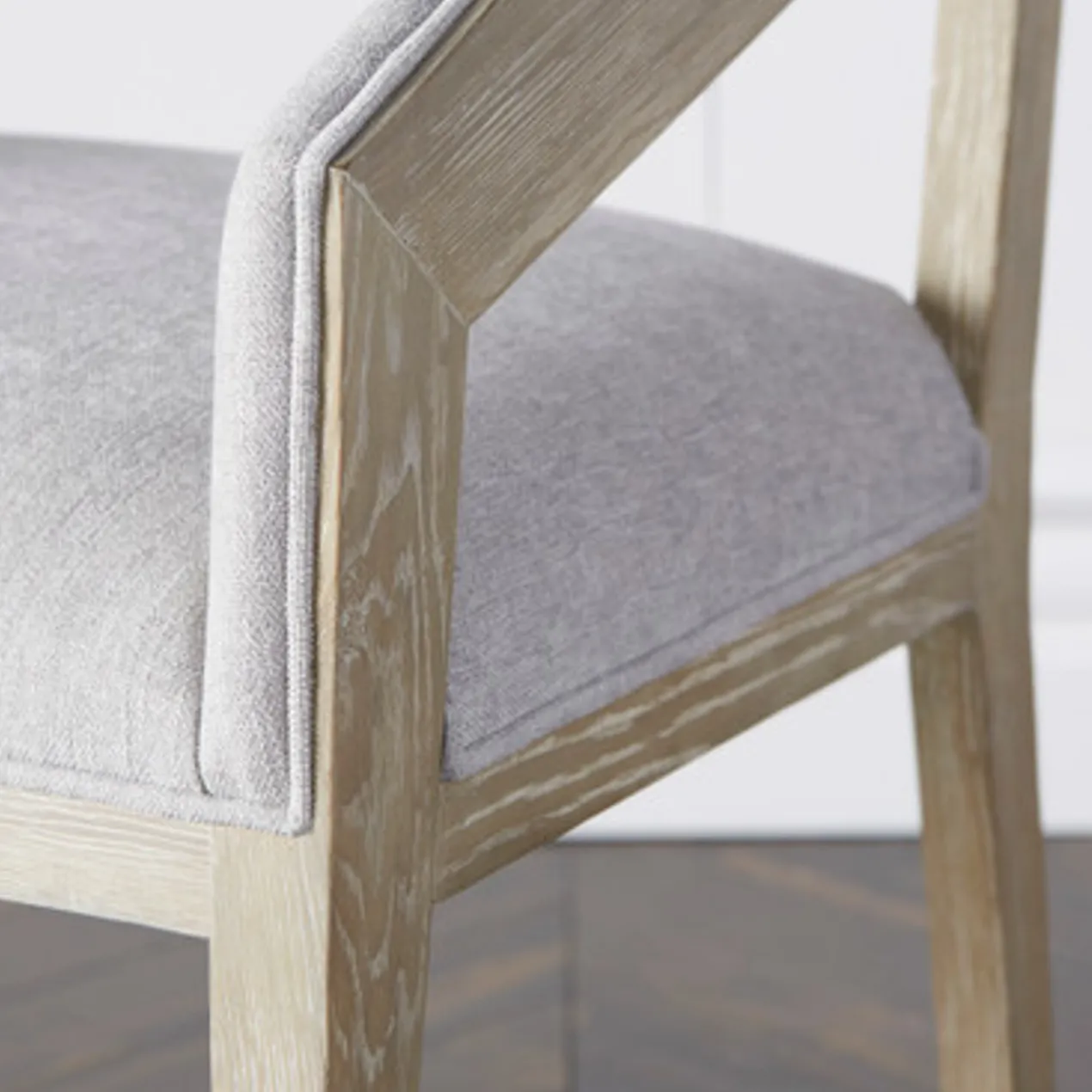 Framed in solid oak with a clean-lined, boxy silhouette and neatly tailored upholstery, our Alric armchair brings classic, modern elegance to the dining room. A natural grey finish shows off the inherent beauty of the wood’s grain. Shown in Maxwell Linen Pearl Grey.