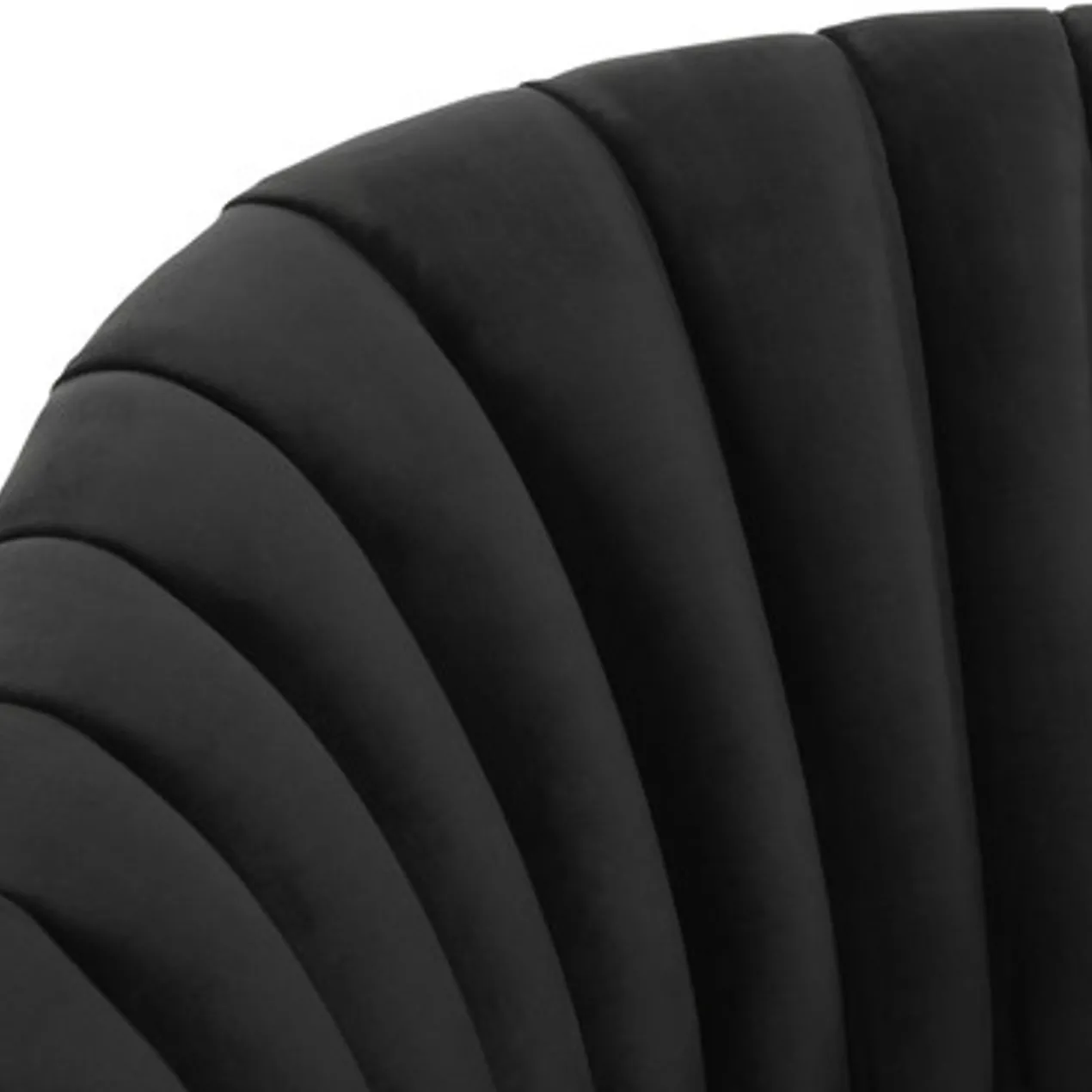 Grey upholstery in a vintage-influenced channel design, this accent chair adds dimension and glamour to any space. Smooth swivel action adds to the appeal of this polished piece.
