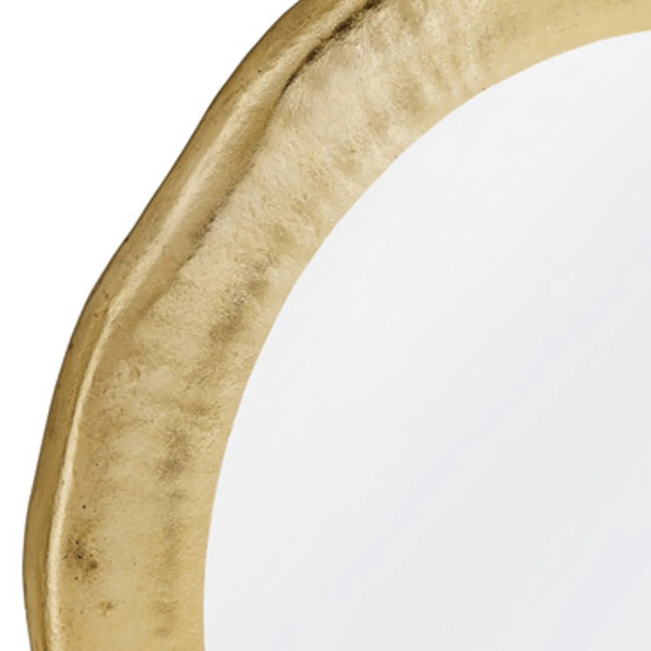 Our Beckett Mirror is a round mirror with a wavy carved gold frame. The hand crafted details produced by a skilled artist lends itself to a unique technique and will vary slightly.