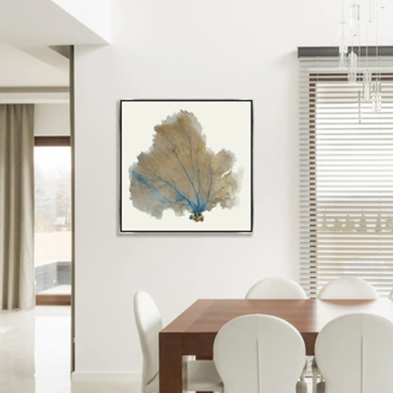 Gallery-wrapped canvas with hand-applied image brush gel finish. Set in a silver floater frame.