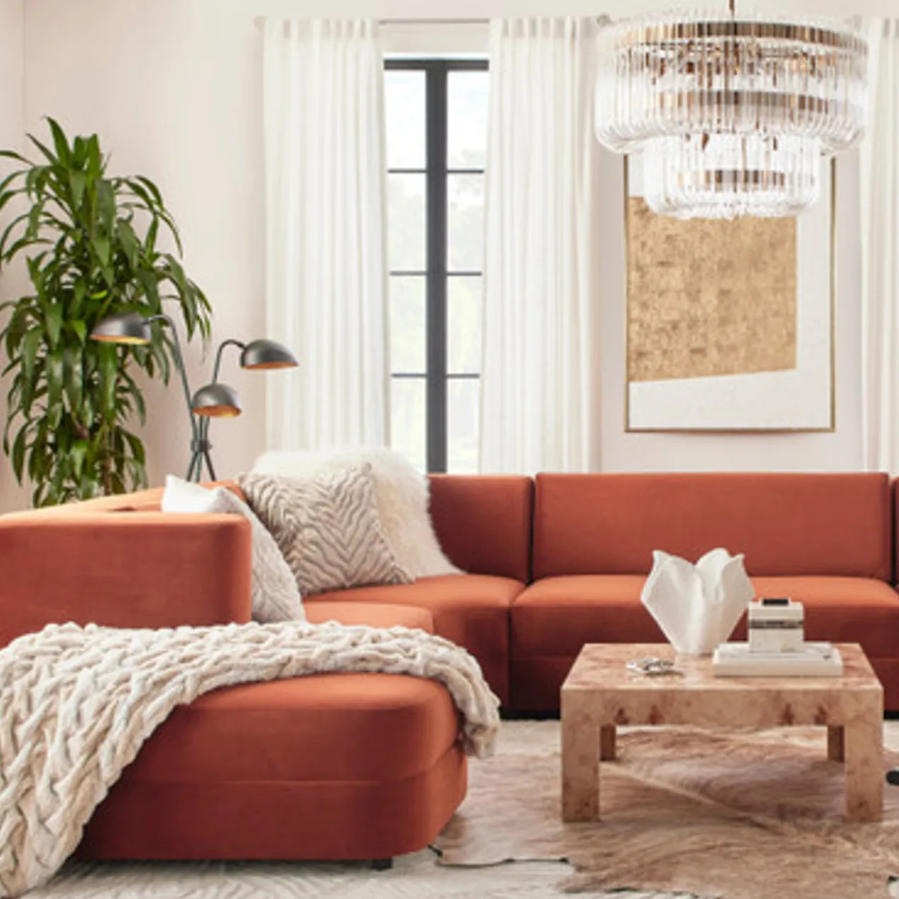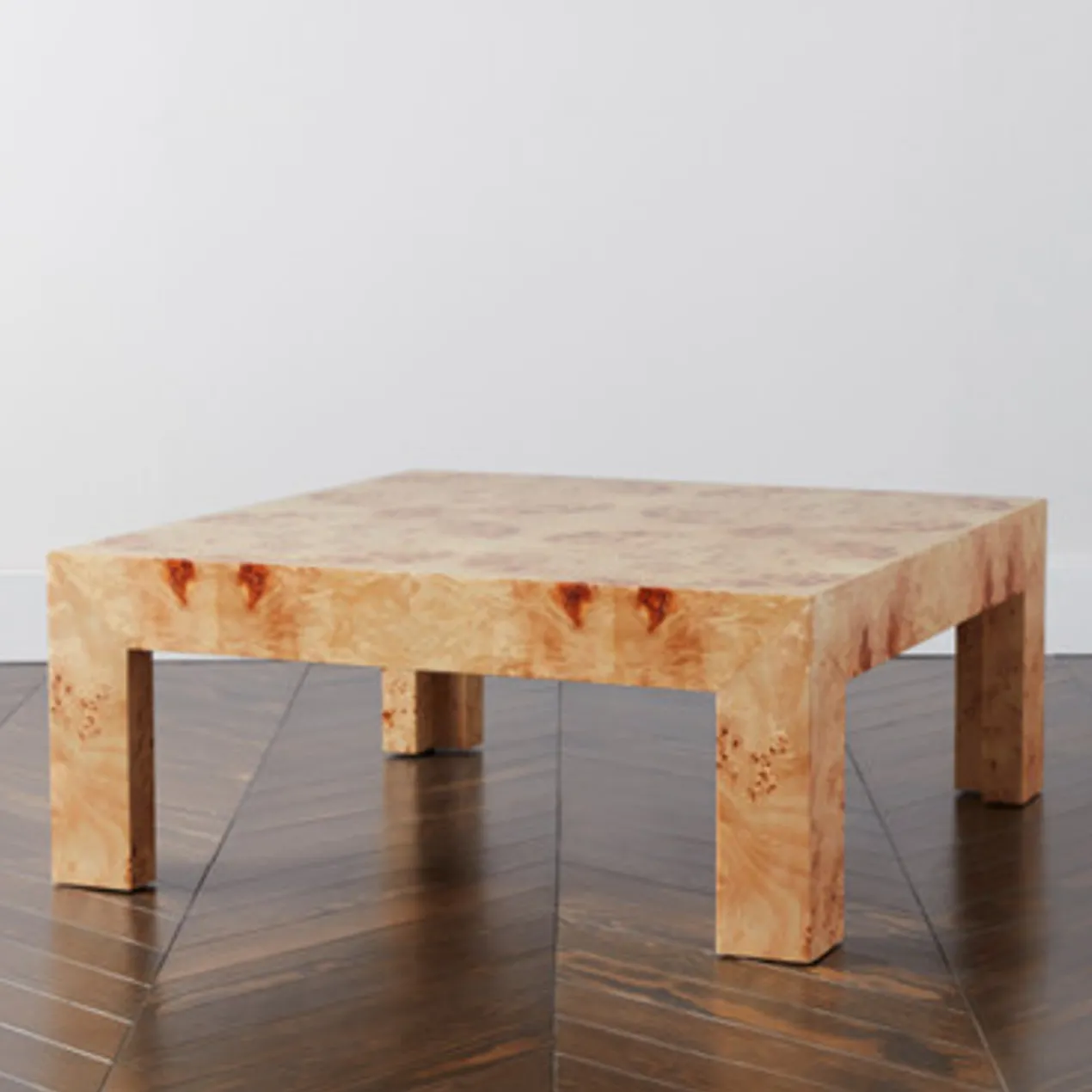 Our Brynn coffee table makes a stunning focal point in the living room with its richly figured burl veneers and modern, clean-lined silhouette. A high-gloss finish completes this luxe design.