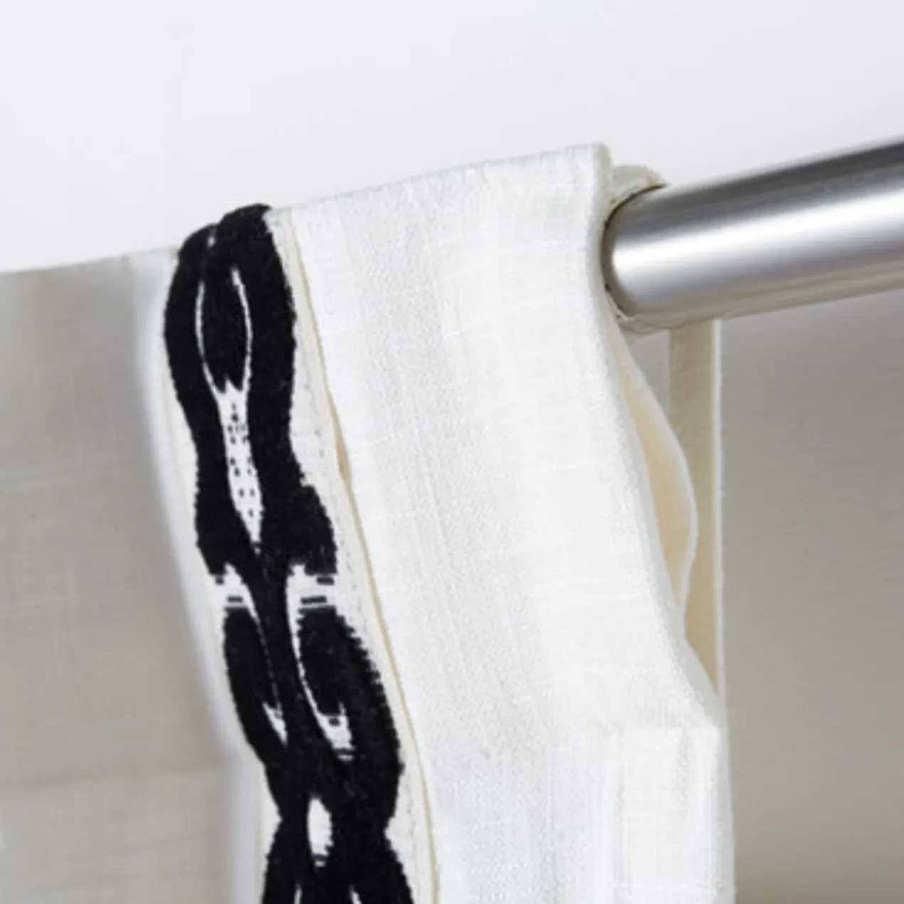 Made from linen-blend fabric for a lovely drape and rich texture, our customizable Chloe Border Panel is offered in four lengths (84”, 96”, 108”, or 120”), two header styles (rod pocket or inverted pleat), and two lining options (single privacy lining or lining and thermal interlining) to fit your space. Choose from seven tape borders—detailed with plush velvet appliqués, jacquard weaving, and embroidery—in classic yet refreshingly modern patterns that frame your windows in high style. Sold as a single panel.