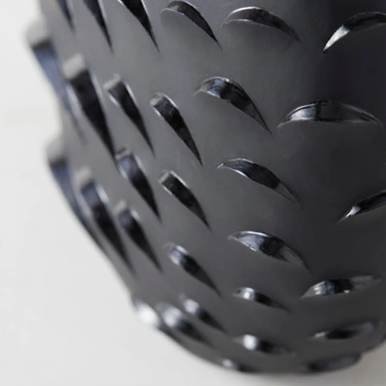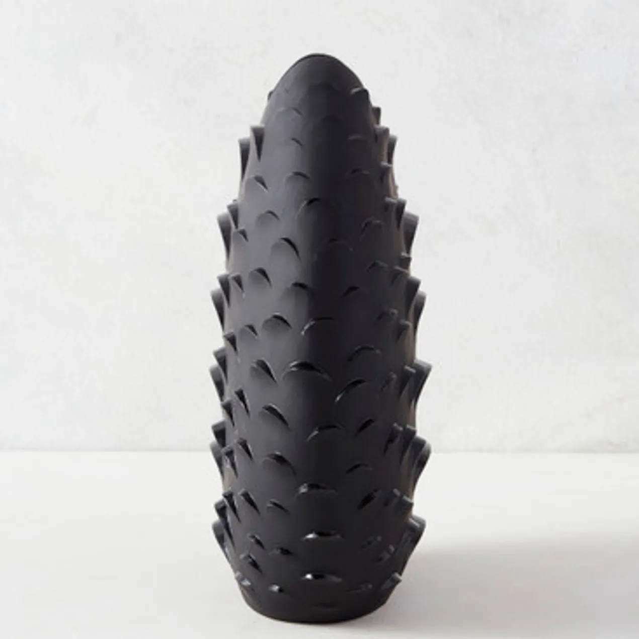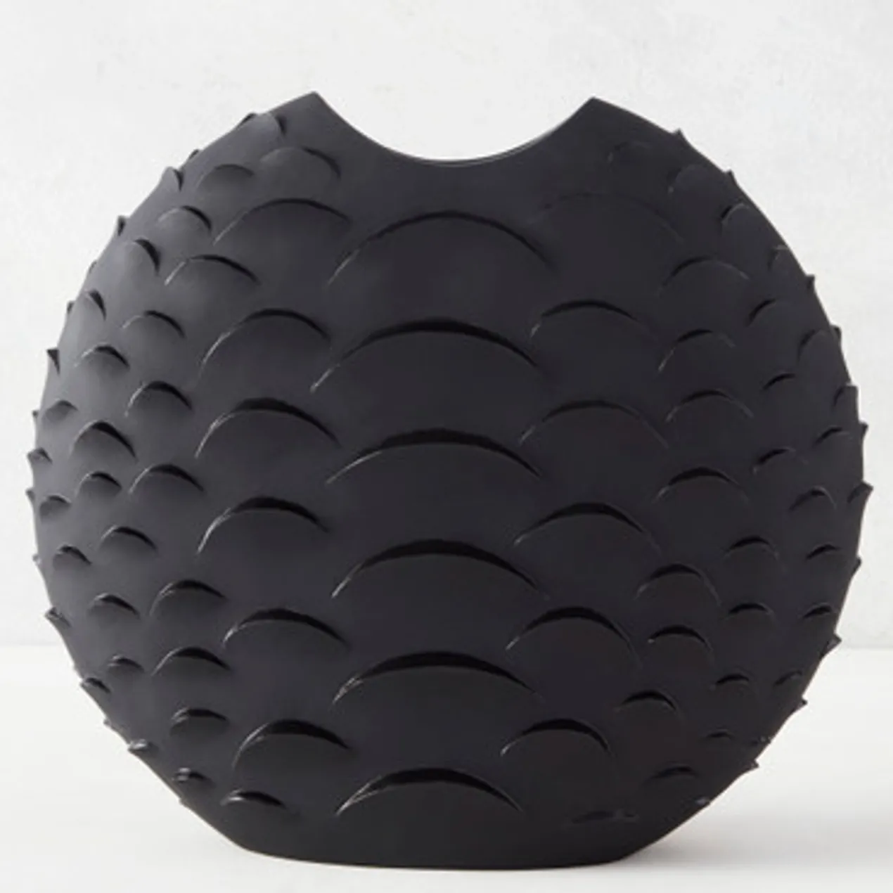 A stunning accent even when it’s not holding blooms or branches, this floor vase is made from lightweight resin with a matte black finish and textural scalloped design reminiscent of snake scales.