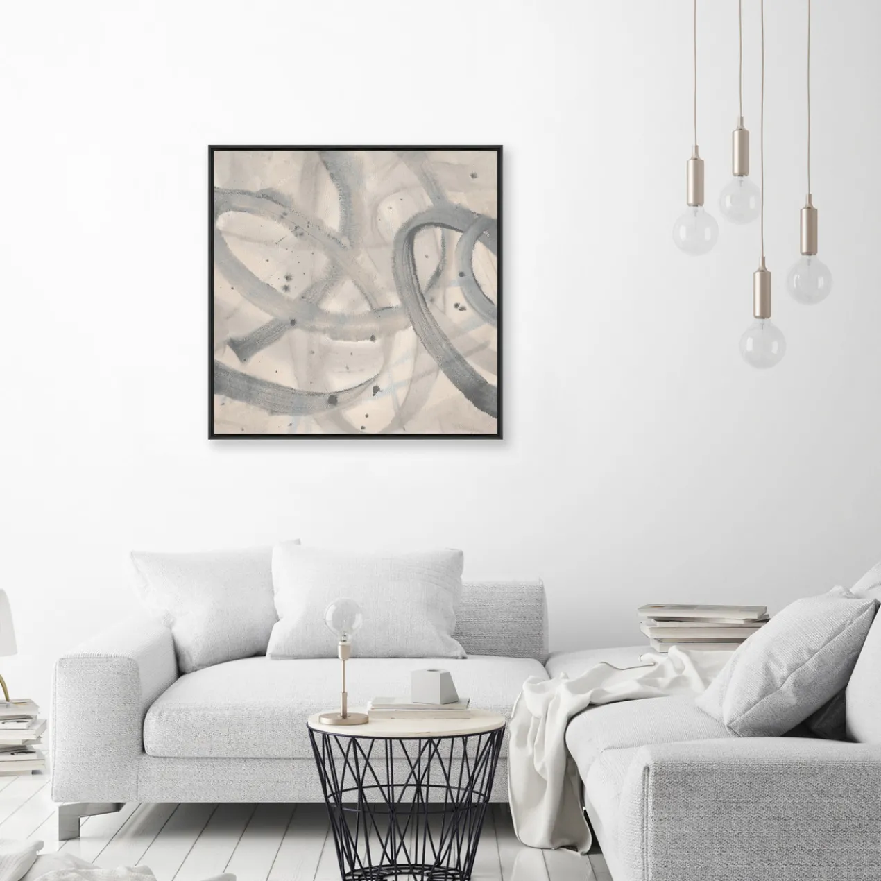 - Set in a gray floater frame.