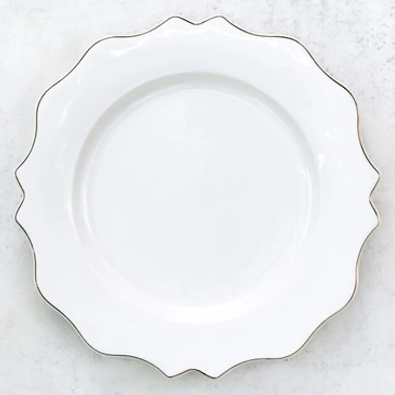 A stylish addition to any table, the pieces in our Coralie Collection are each crafted of porcelain with a scalloped, petal-like rim and gold border.