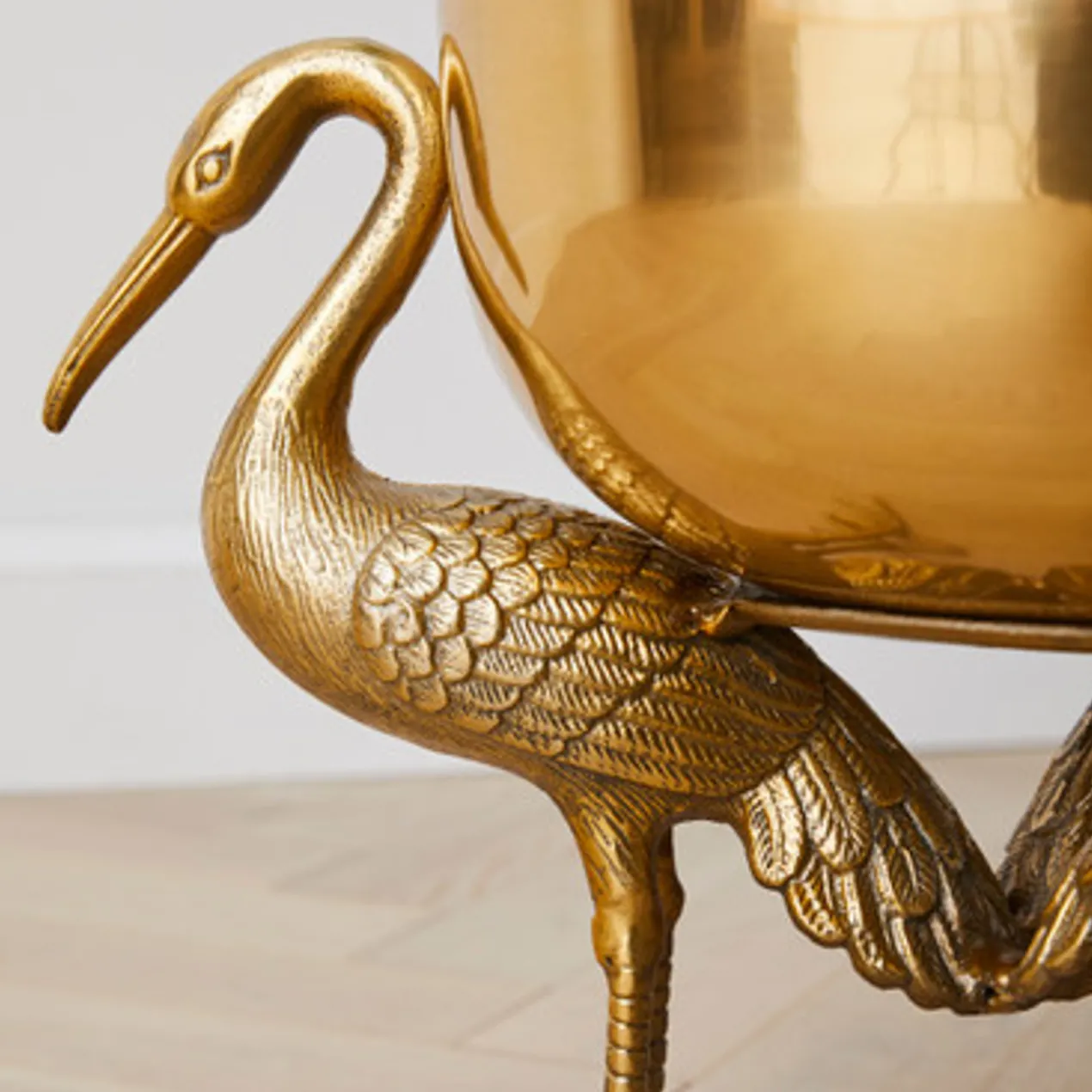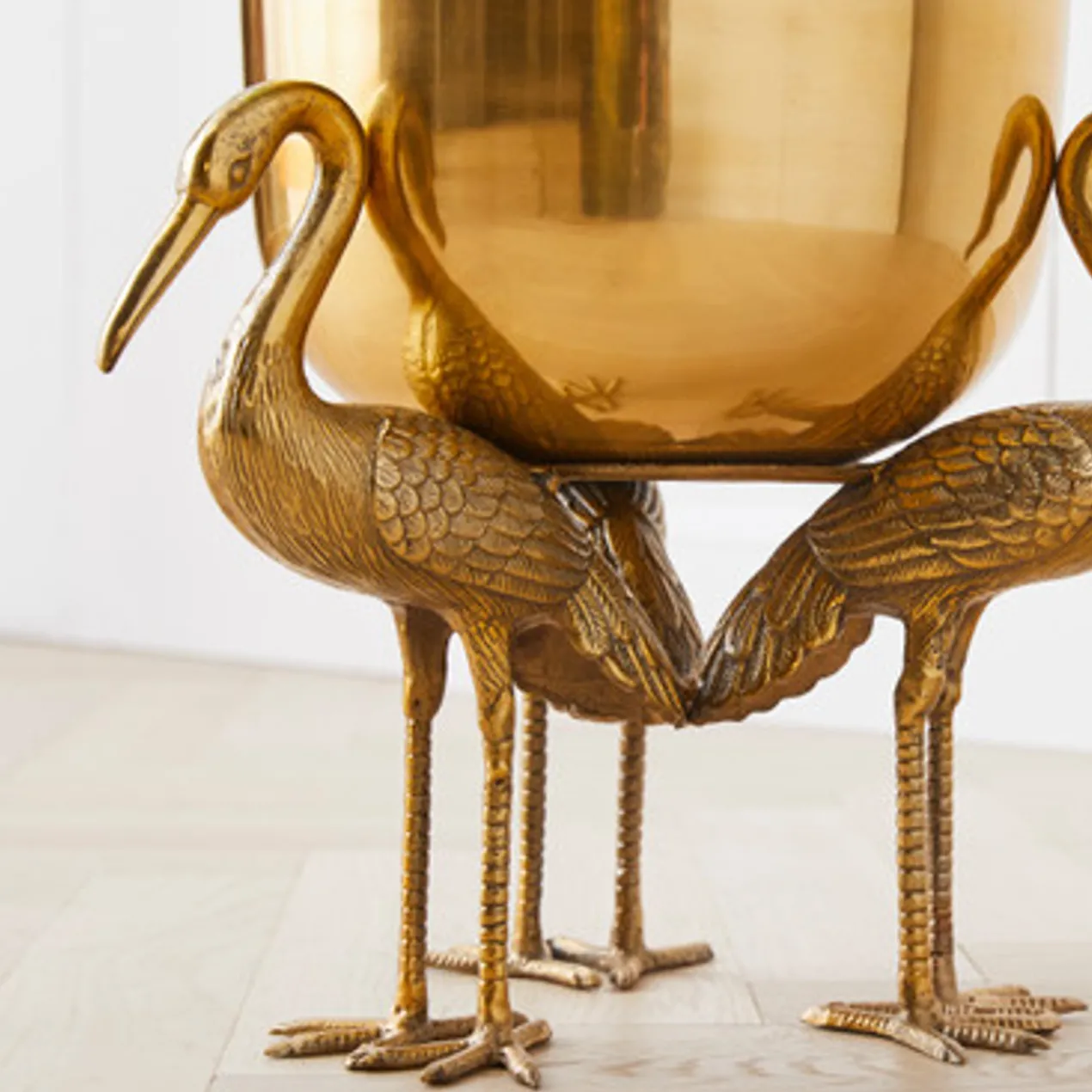 Ideal for bringing a whimsical style to your space. This planter is perched on a trio of cranes and finished in gleaming gold.