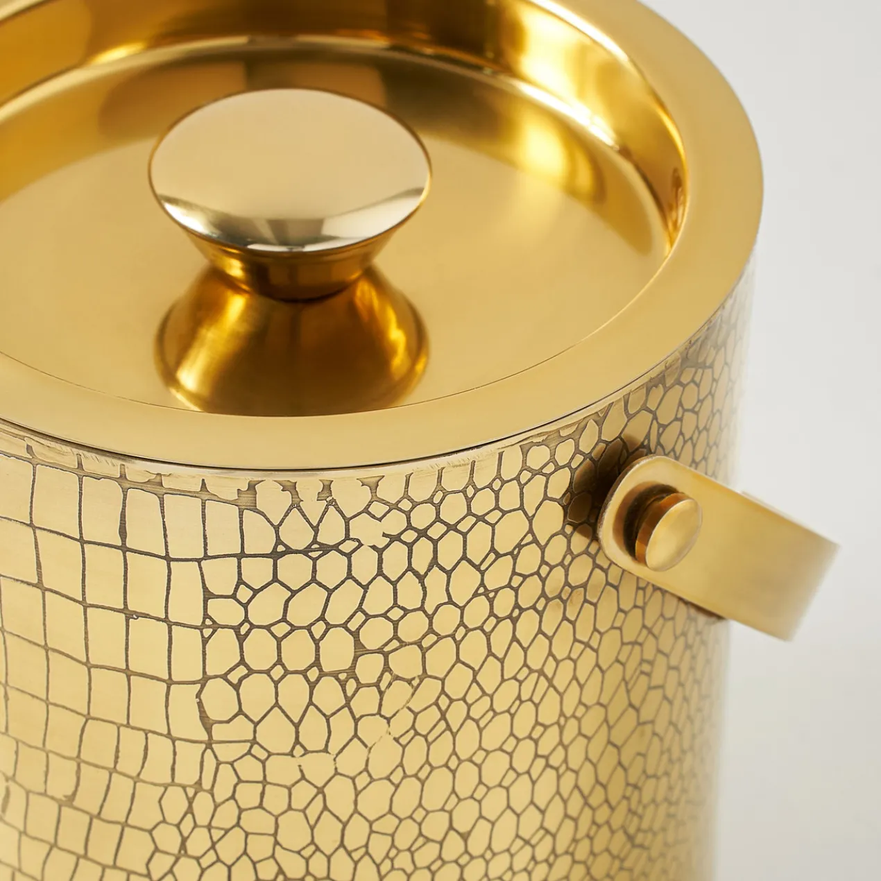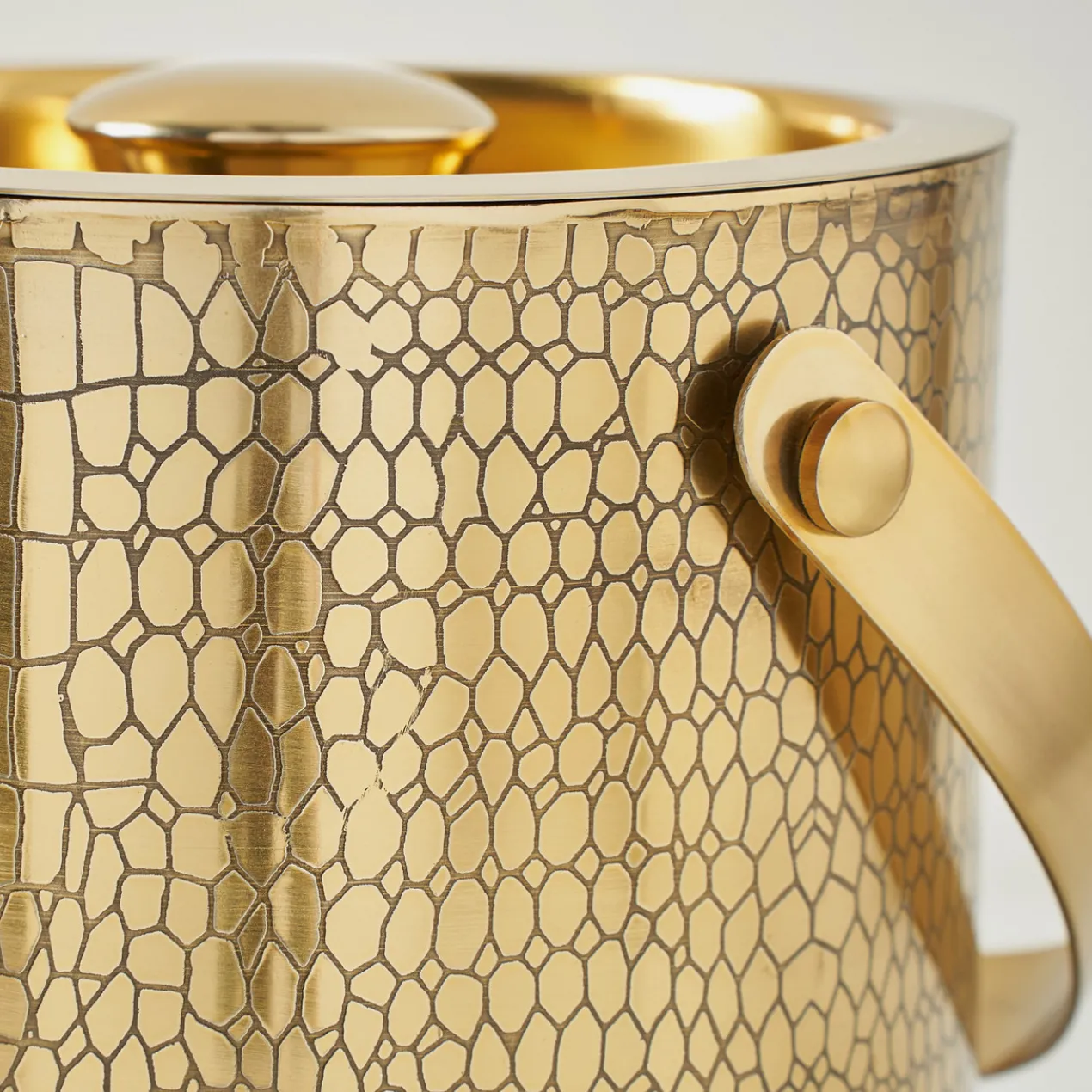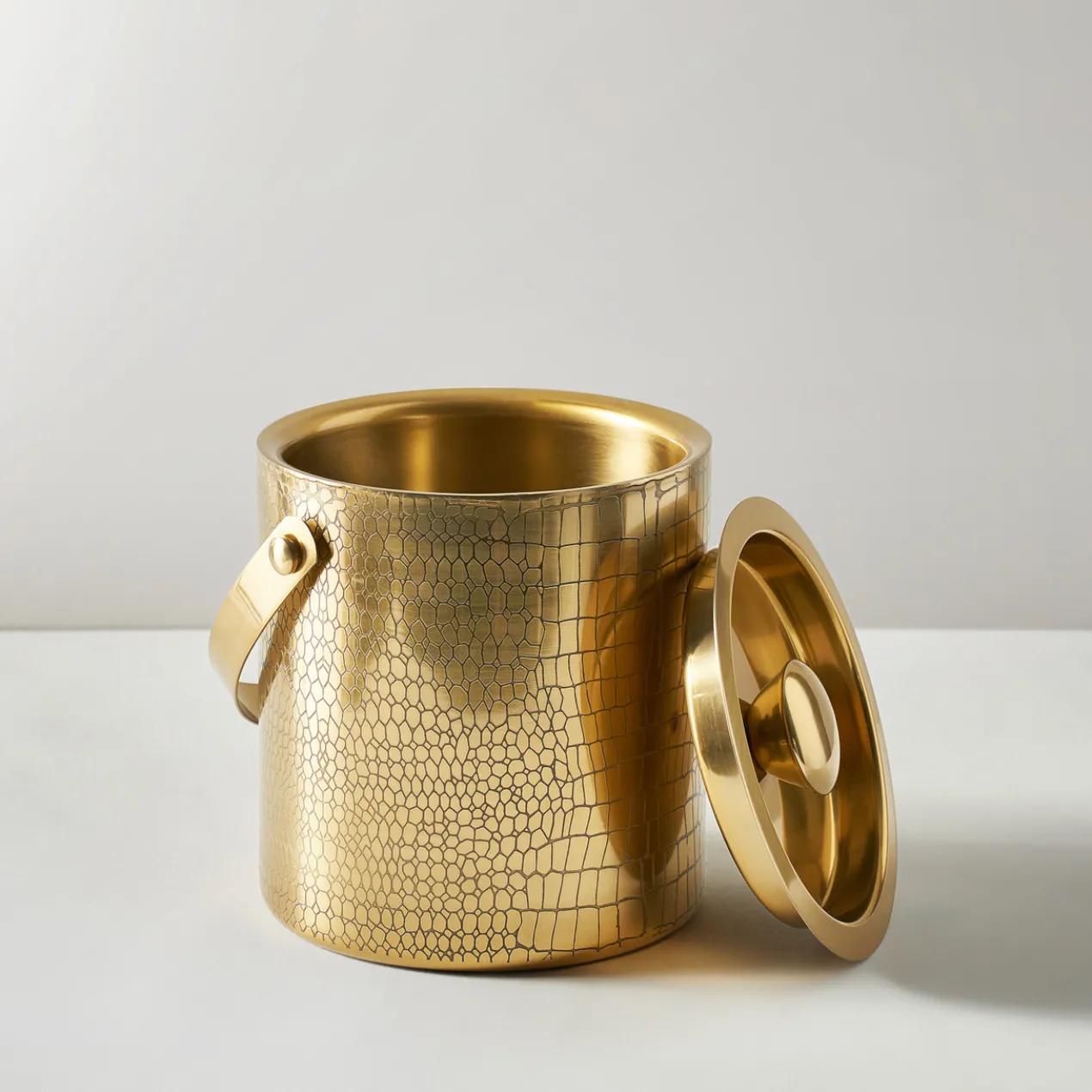 Not-your-average ice bucket, this chic croc-embossed style in a gleaming gold finish doubles as décor, instantly elevating your bar cart.