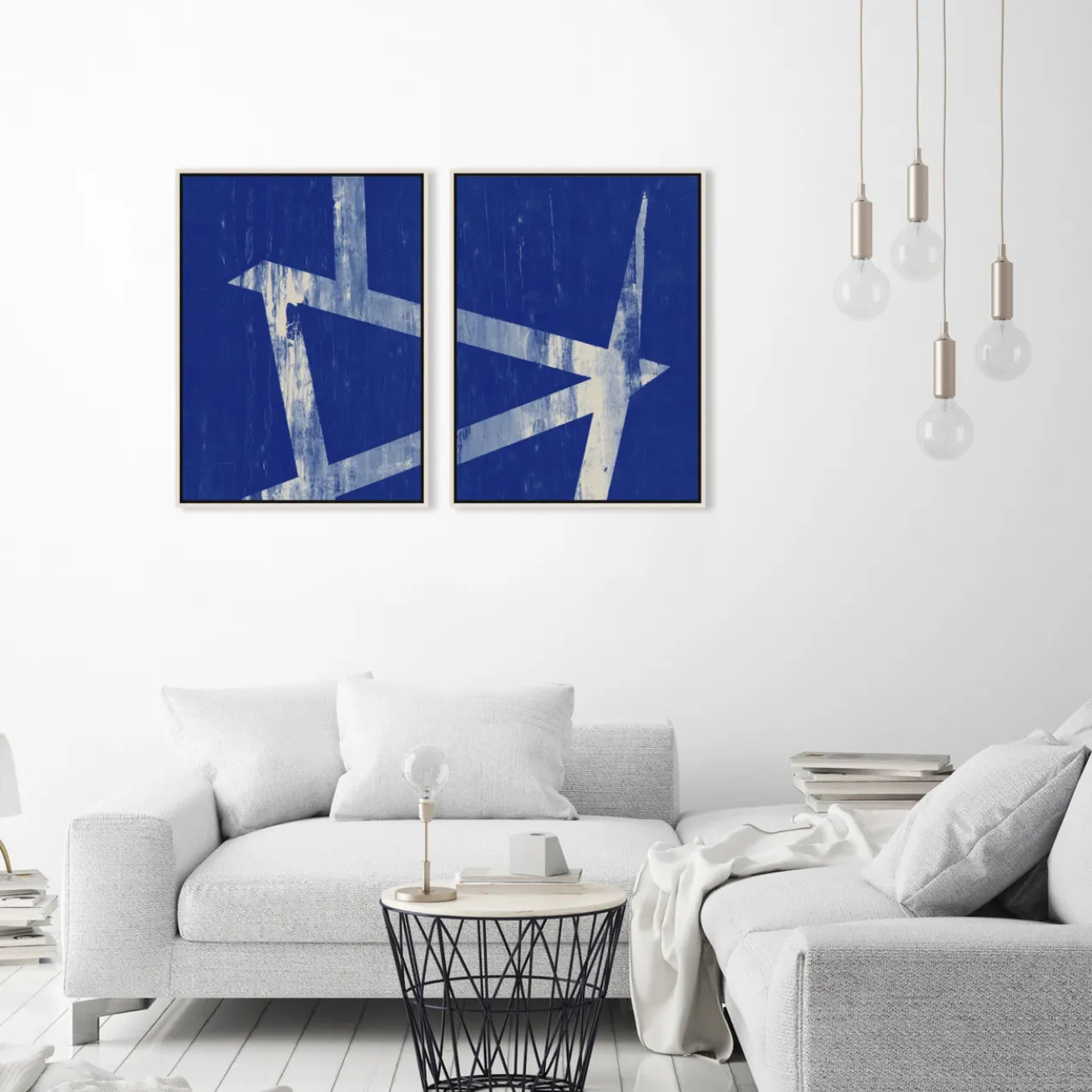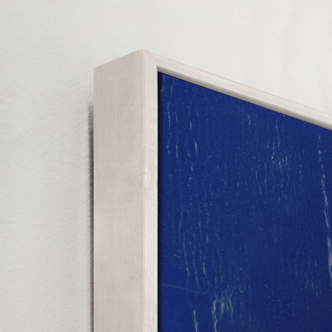 - Set in a white floater frame.