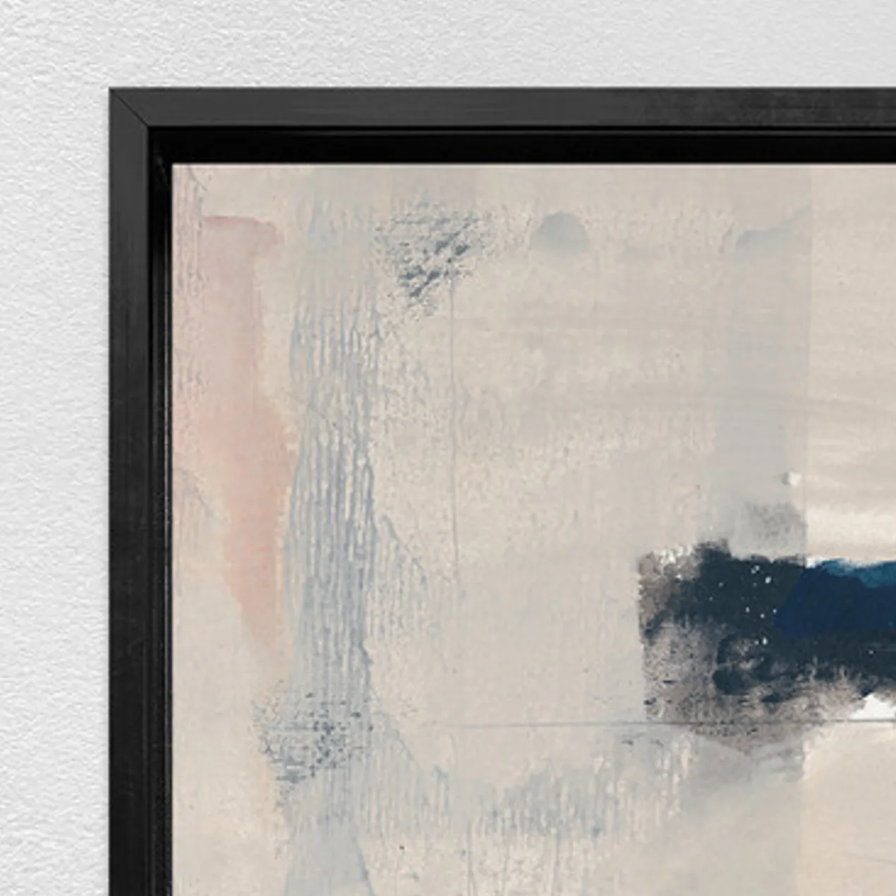 Gallery-wrapped canvas with hand-applied image brush gel finish. Set in a black floater frame.