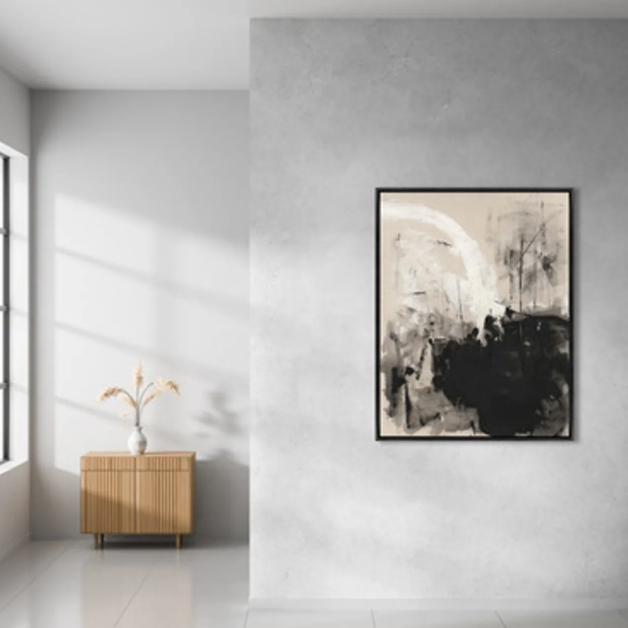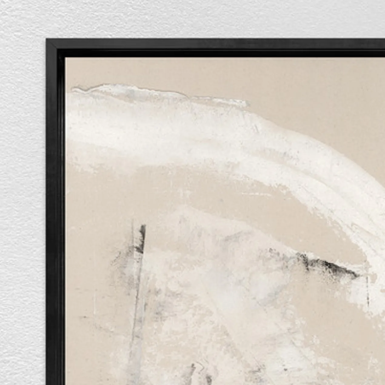 Gallery-wrapped canvas with hand-applied image brush gel finish. Set in a black floater frame.