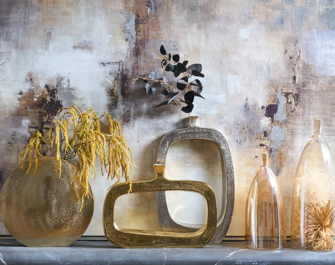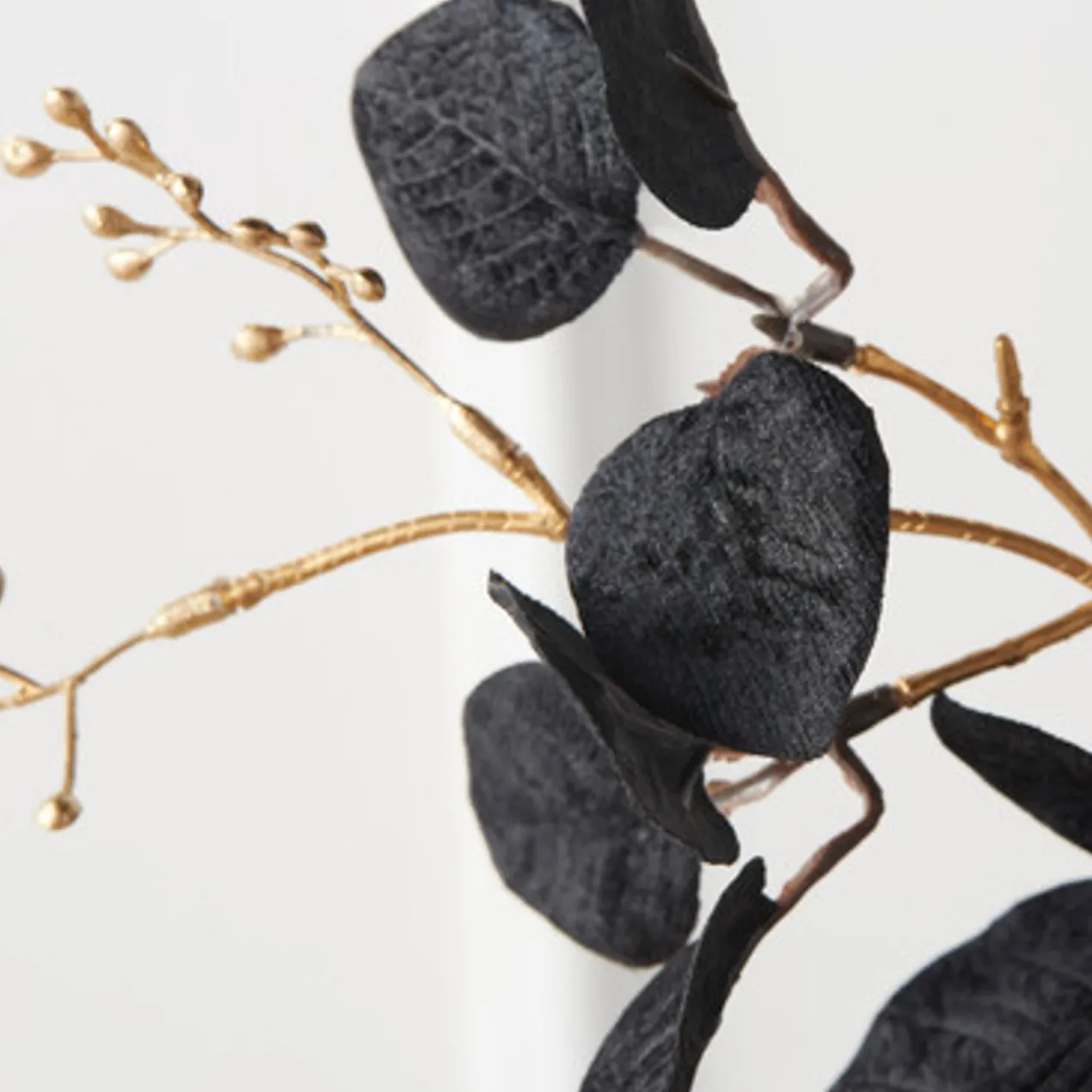 Finished in black and gold, these stunning faux-eucalyptus stems make a festive addition to your holiday decor.