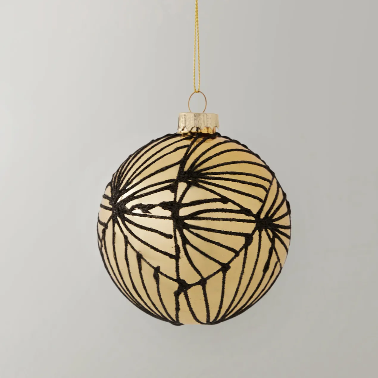 Adorn your tree with this polished gold ornament with geometric glitter detailing.