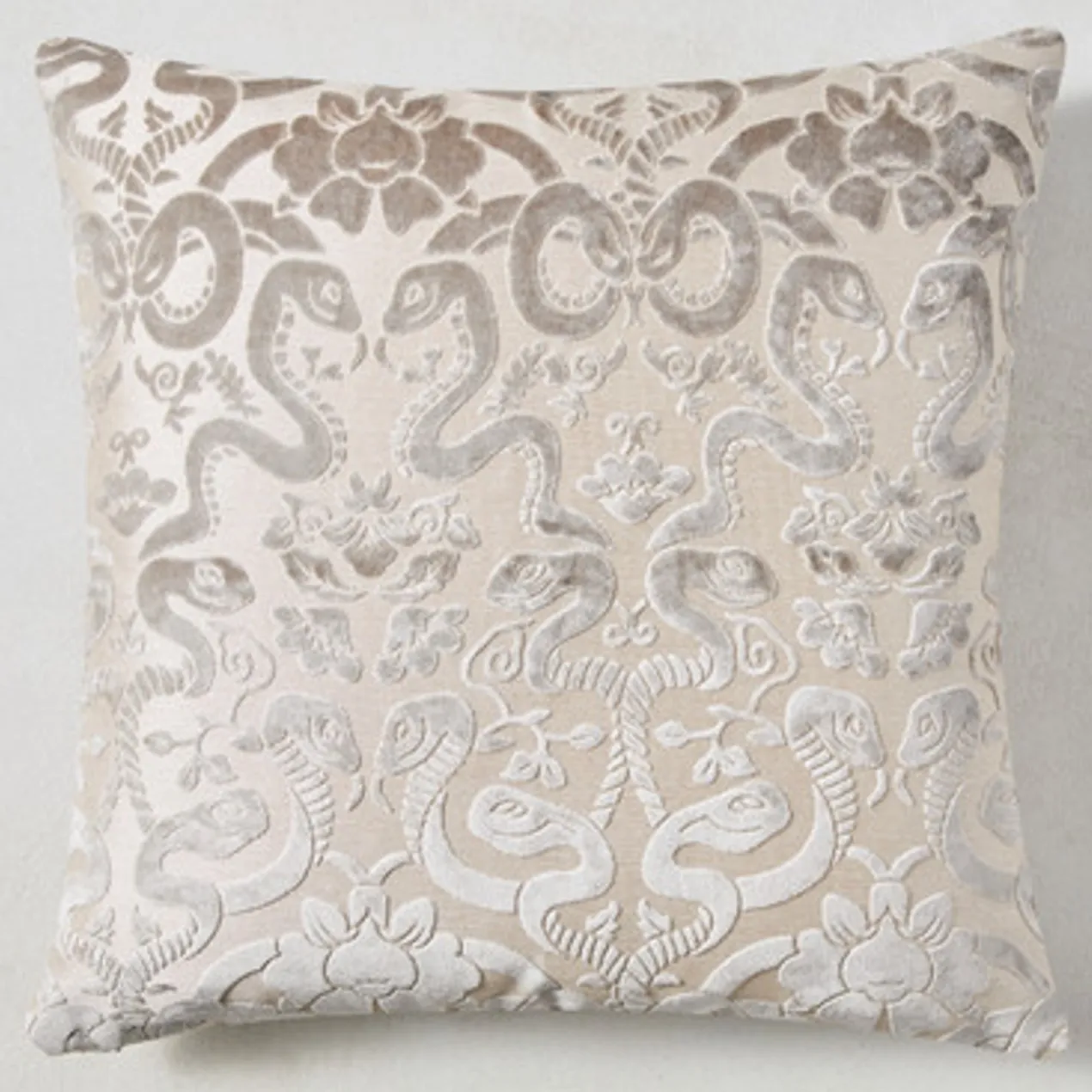 An intriguing snake-and-flower design pops on this cut-velvet pillow, making it a stunning accent for any sofa, bed, or chair. Insert included.