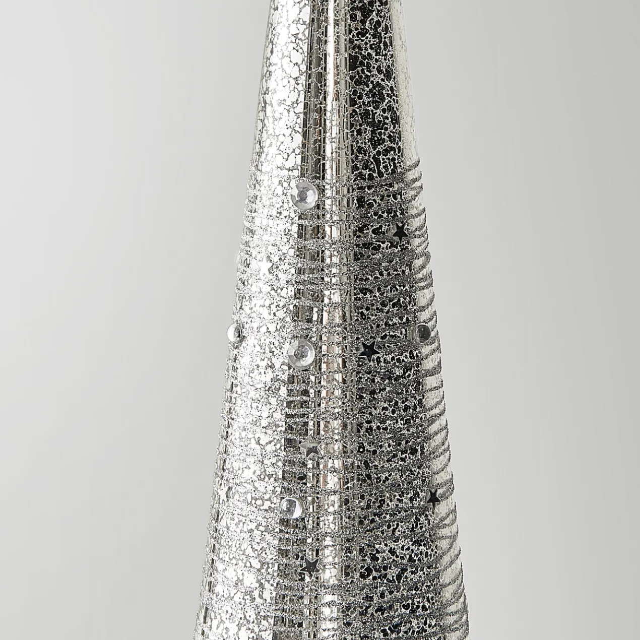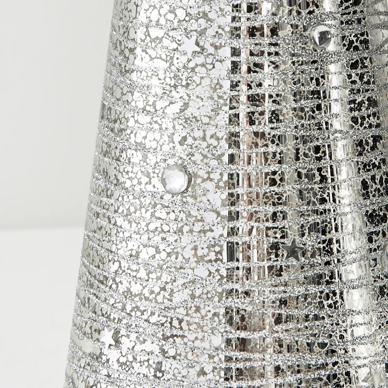 This set of two lustrous trees will add elegance to your holiday decor. Embellished with glitter and rhinestones, these silver glass trees are perfect to enhance a shelf or act as an eye-catching centerpiece.