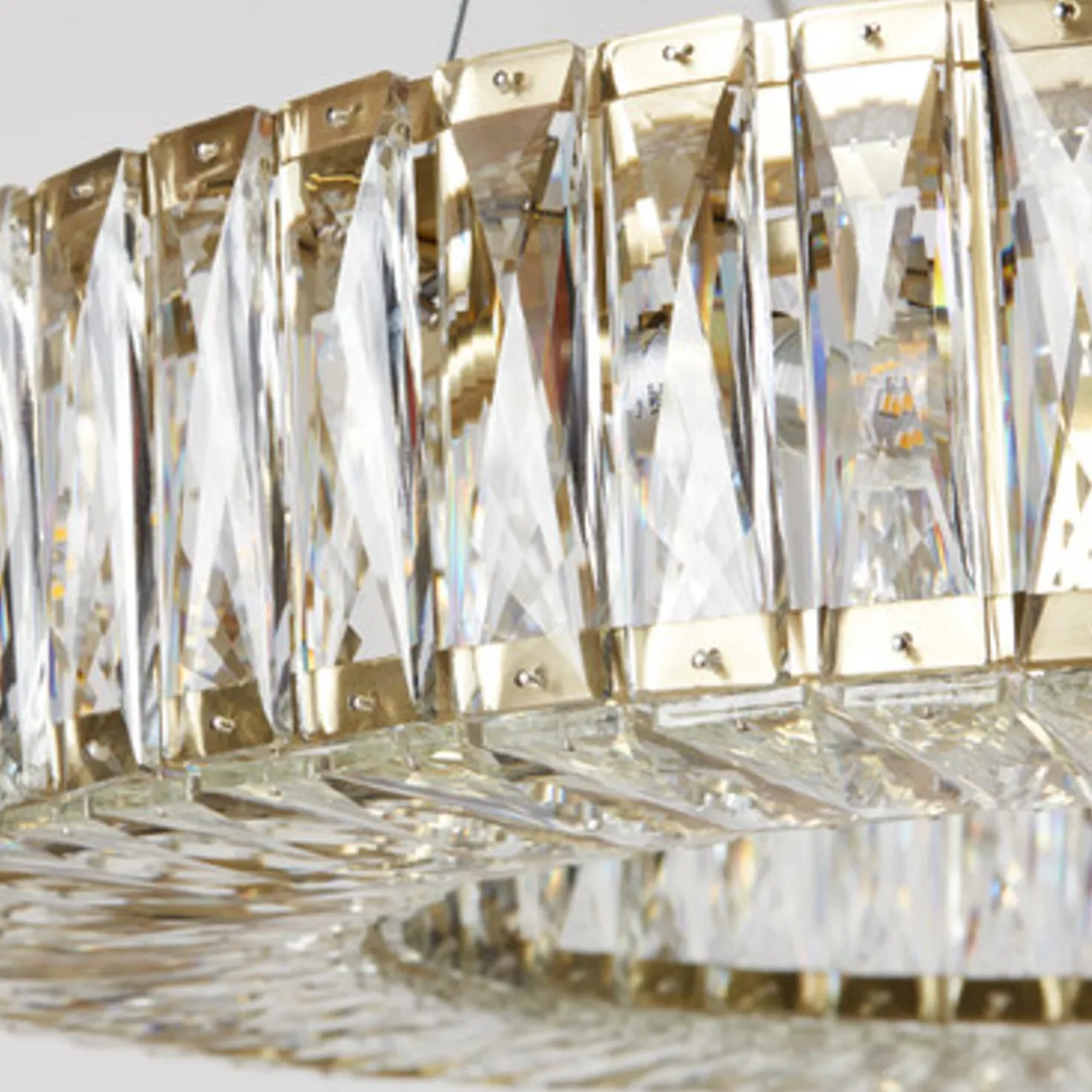 Elegantly simple and modern, the Gleam Lighting Collection is a solution fit for any space. Finished in soft gold, the round chandelier is embellished with faceted crystals for a glamorous touch.
