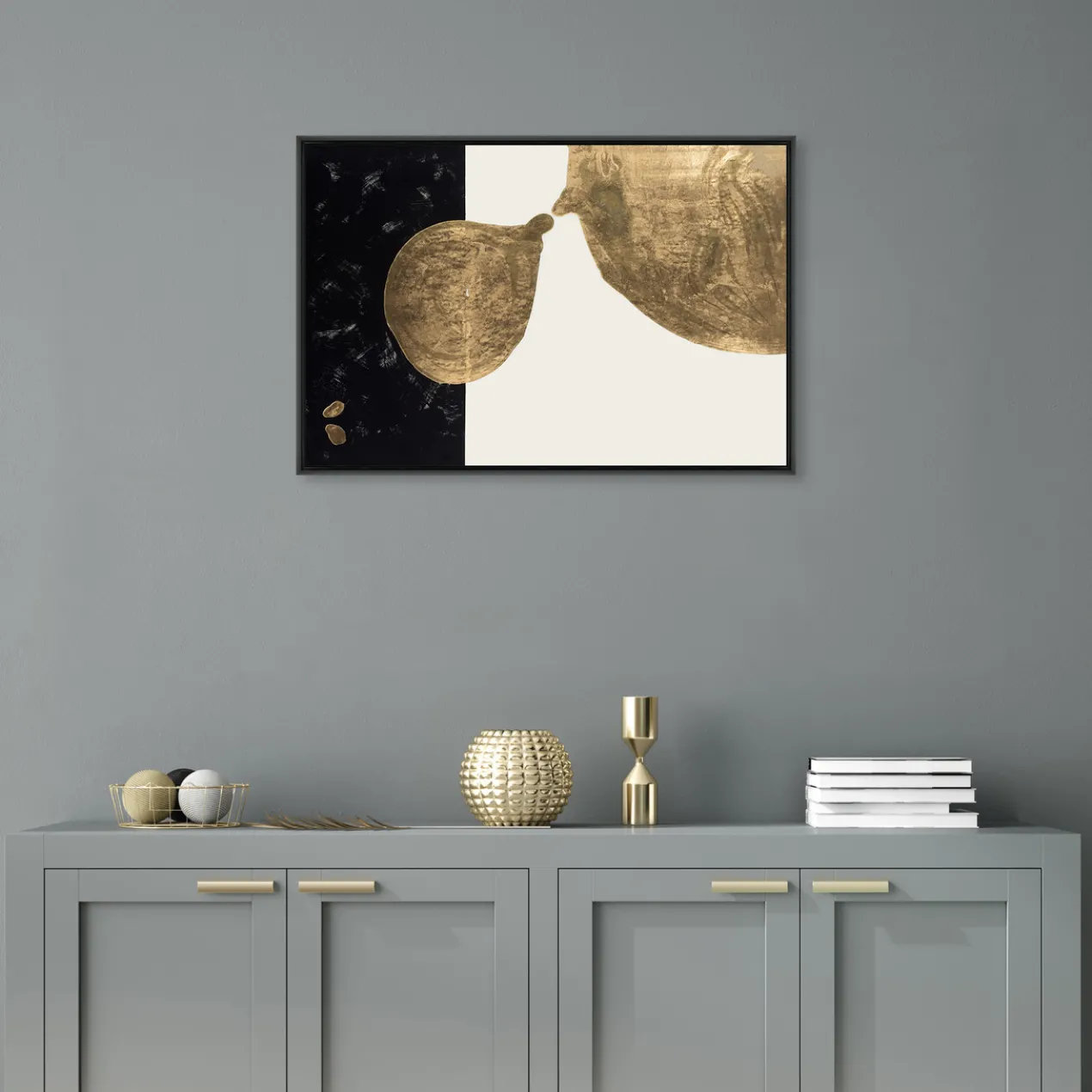 - Set in a gray floater frame.