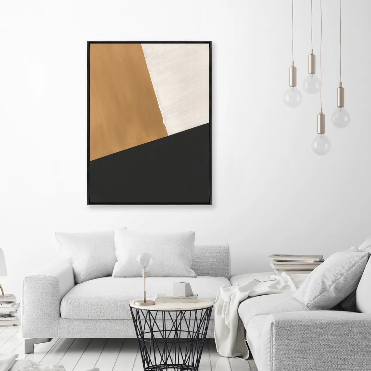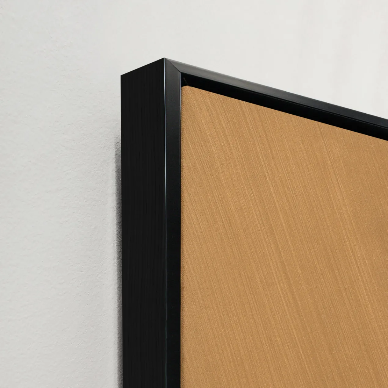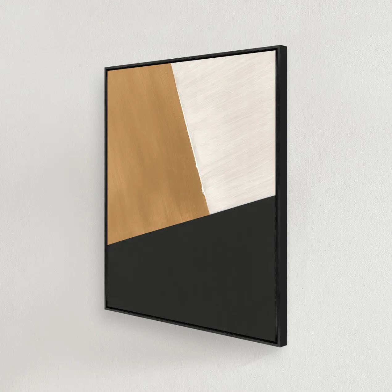 - Set in a black floater frame.