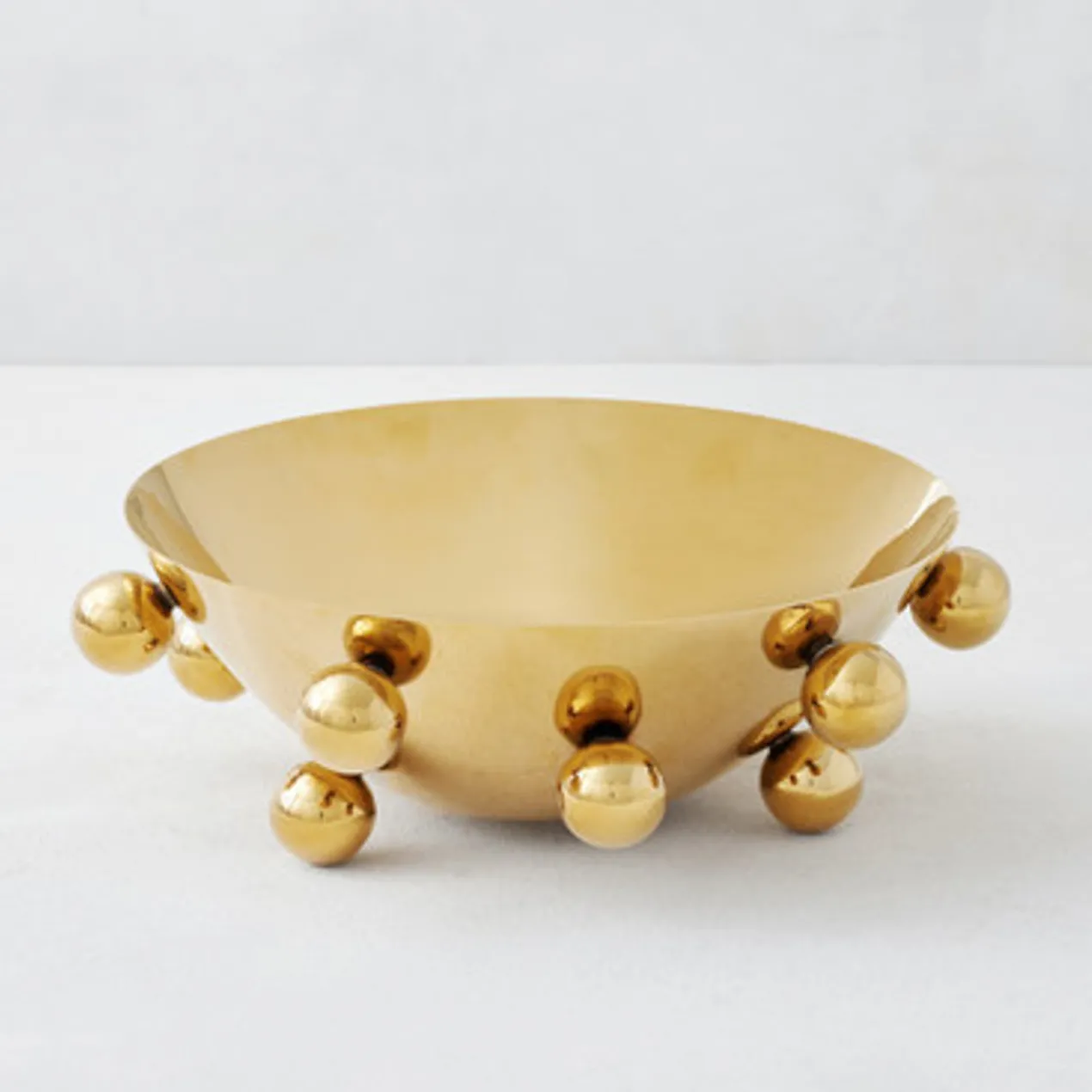Sometimes you just need something unique. The stainless steel Gramercy Bowl features multiple polished knobs as whimsical pedestals.