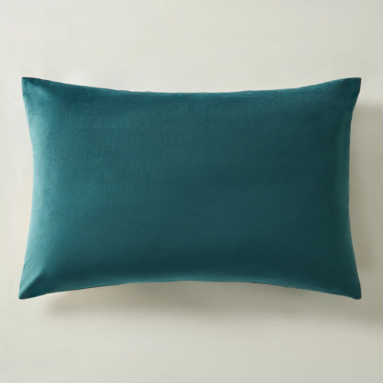 Our chic Leopard Lumbar pillow adds interest to any room. Made from a luxe dark teal velvet adorned with an embriodered leopard face. Removable cover with hidden zipper closure. Plush feather down Insert included.