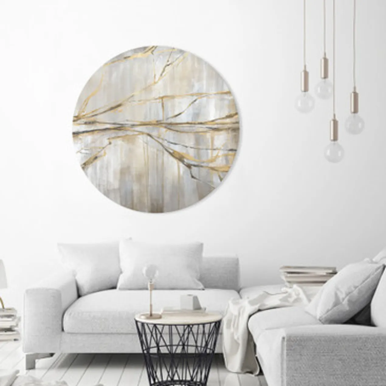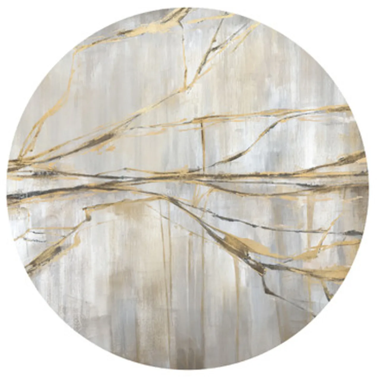 Lightening Crashes is a gallery-wrapped linen circular canvas with hand-applied texture finish.
