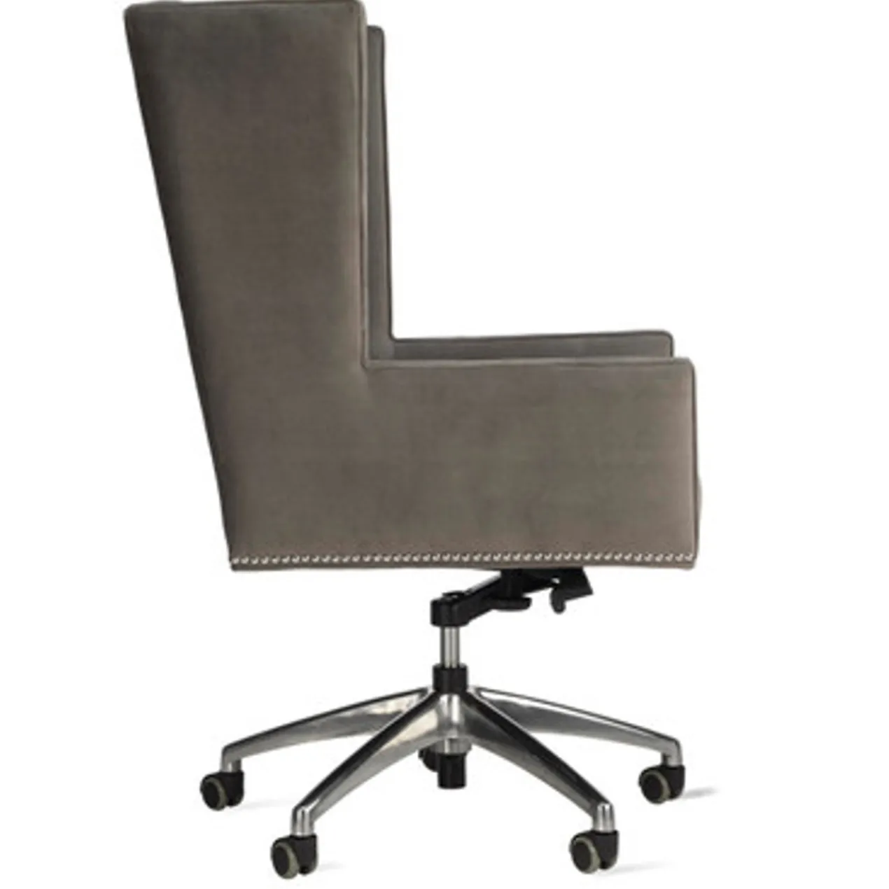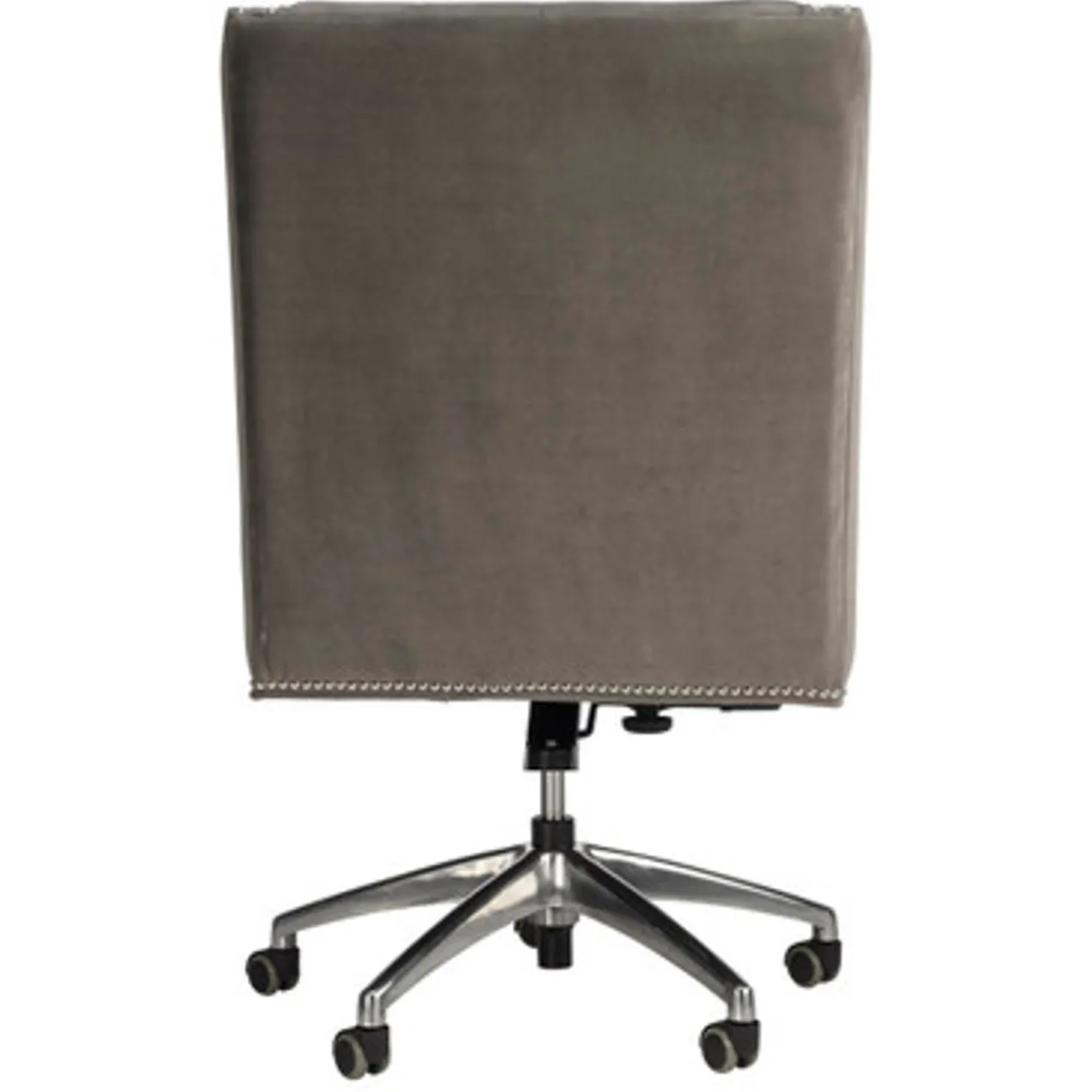 With its grand scale Logan Desk Chair makes the perfect executive chair for any home office. Smooth casters and firm support make long work hours a beautiful thing. Shown in Bella Velvet Otter with bright nickel nailheads.