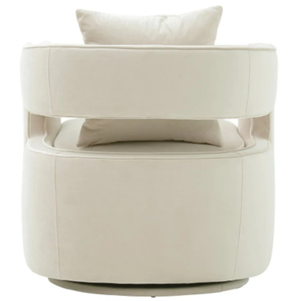 With its barrel back, cutout arms, and Cream velvet upholstery, this swivel chair adds instant glamour to a room. A kiln-dried frame and plush foam-and-fiber fill ensure long-lasting comfort and support.