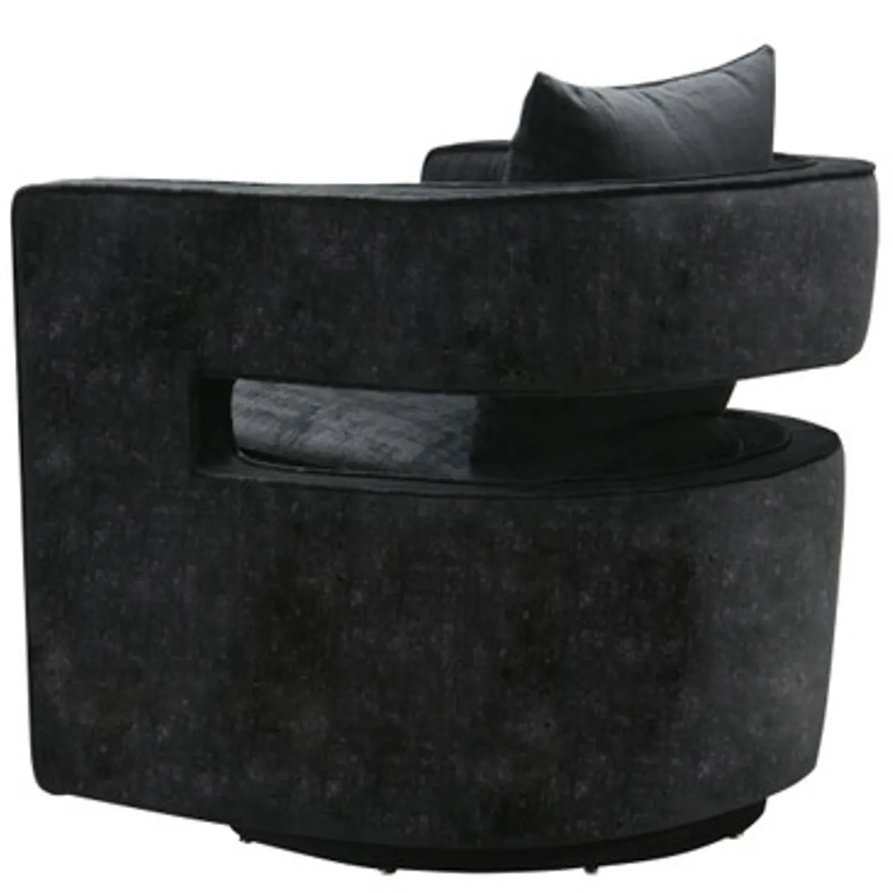 With its barrel back, cutout arms, and Black velvet upholstery, this swivel chair adds instant glamour to a room. A kiln-dried frame and plush foam-and-fiber fill ensure long-lasting comfort and support.