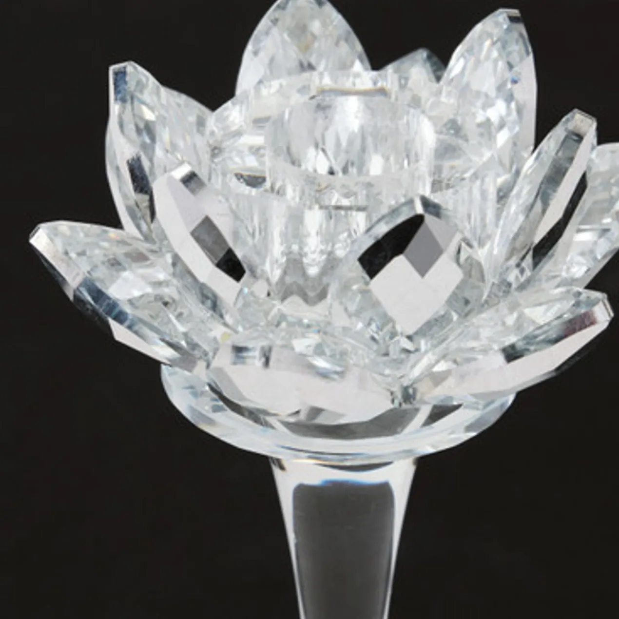 Give your evening a glam glow. This taper candle holder features an intricately faceted glass lotus at its base for eye-catching candlelight that dances the night away. Sold separately.