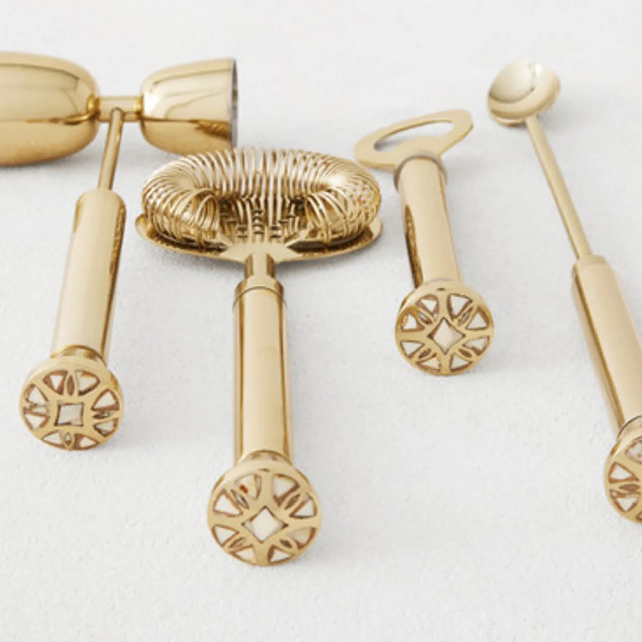 Finished in gold and mother of pearl details, the Lourdes Bar Collection offers sophistication with a hint of natural glamour.