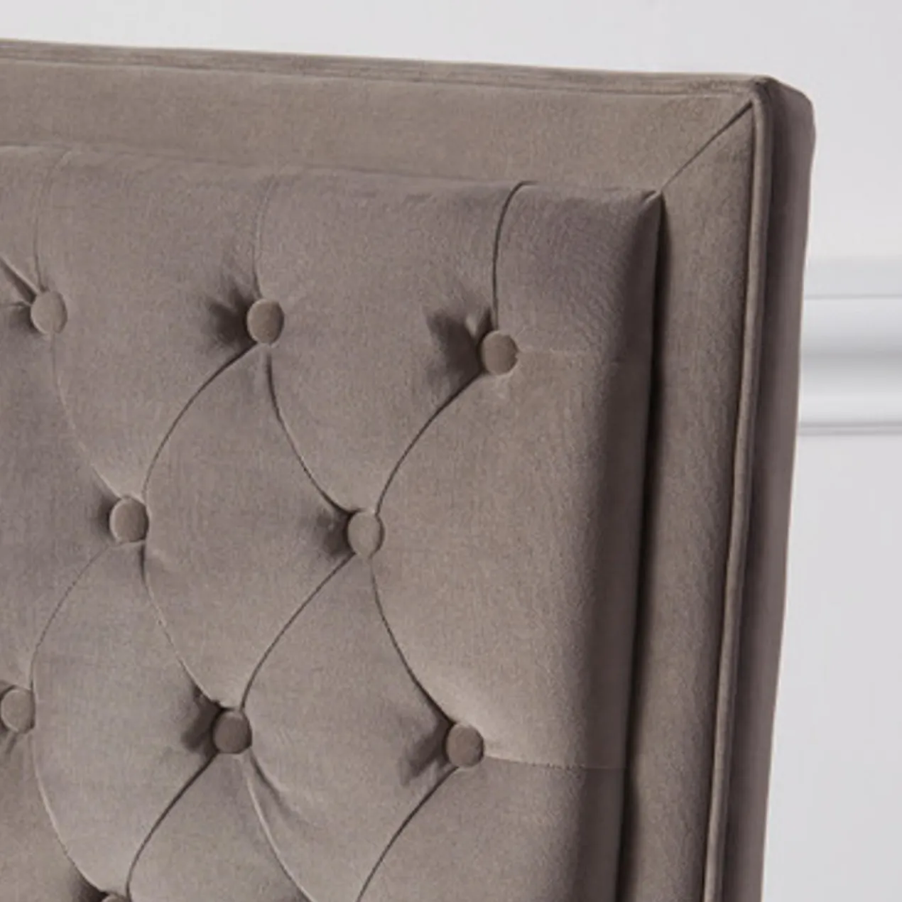 Maxwell, a modern dining chair, features deep tufts for a more tailored look, making it the perfect option for everyday use. Shown in Bella Velvet Otter.