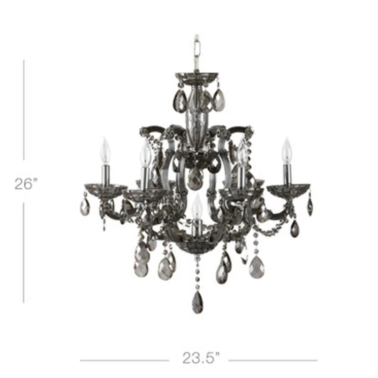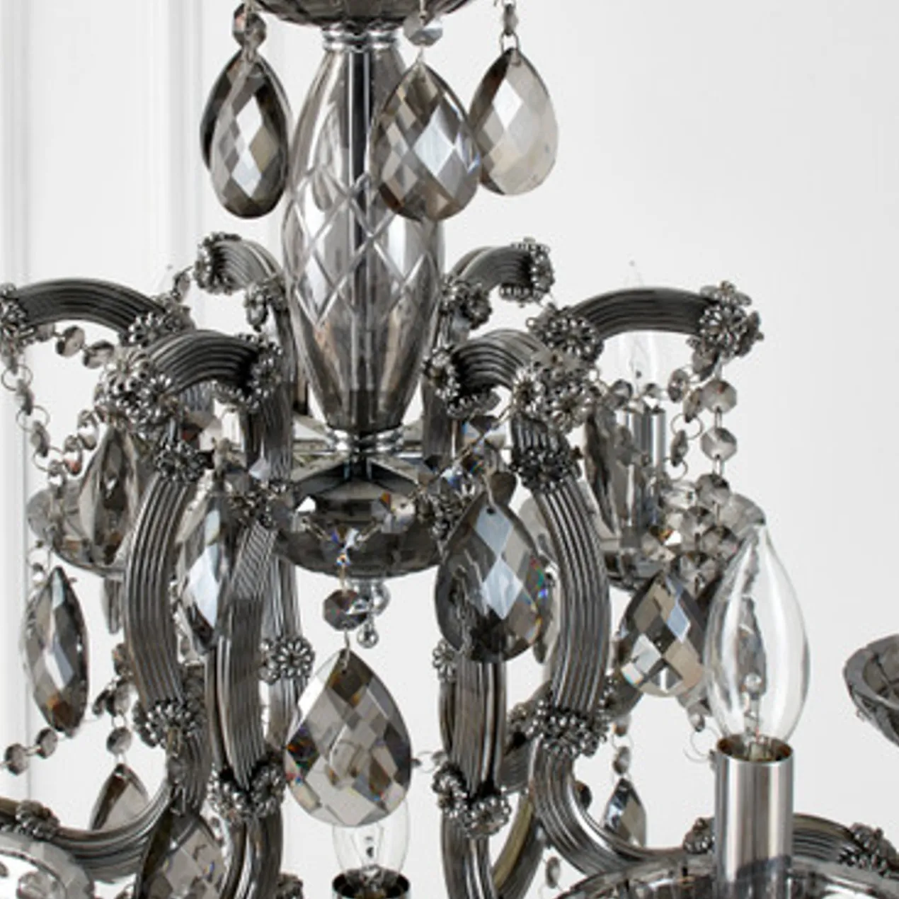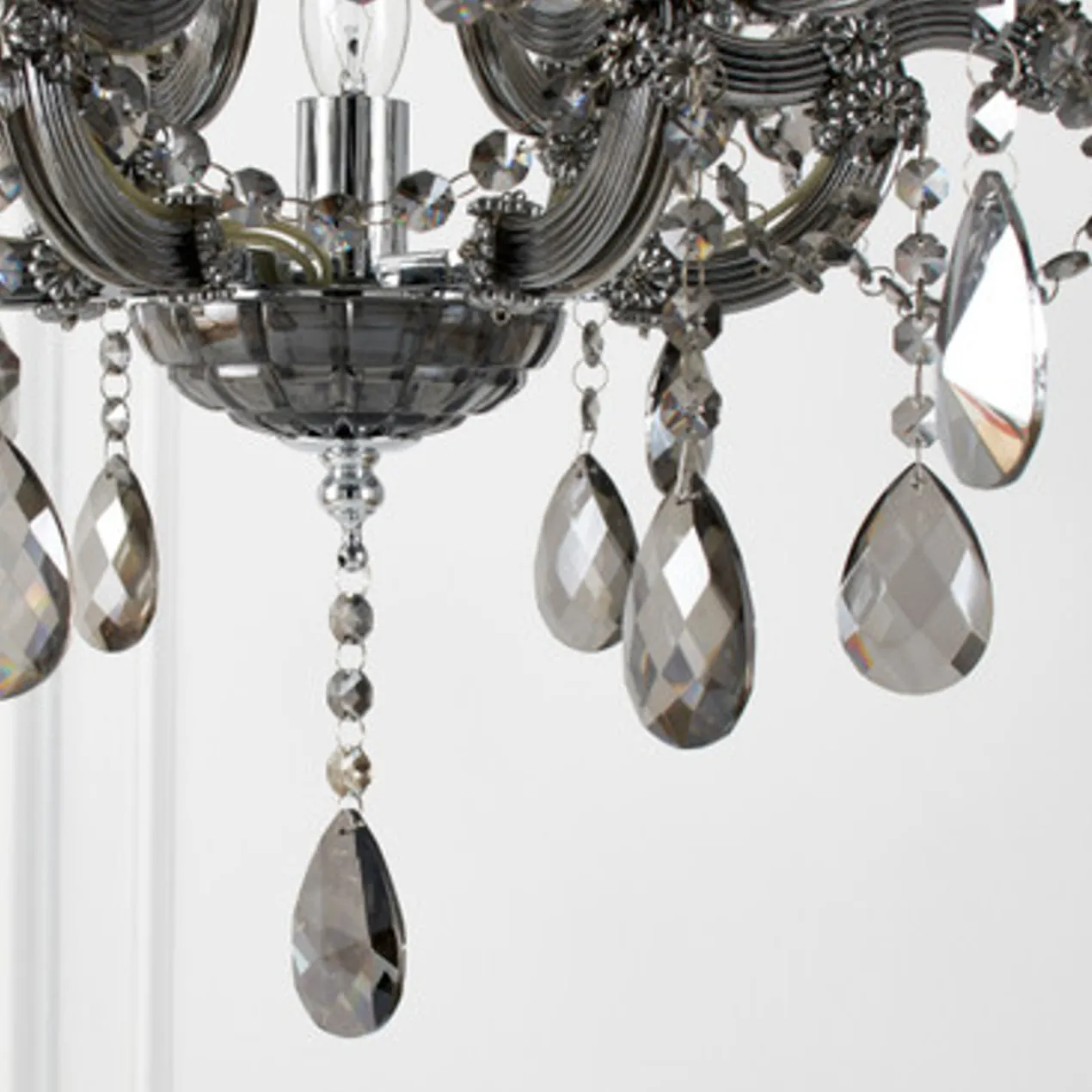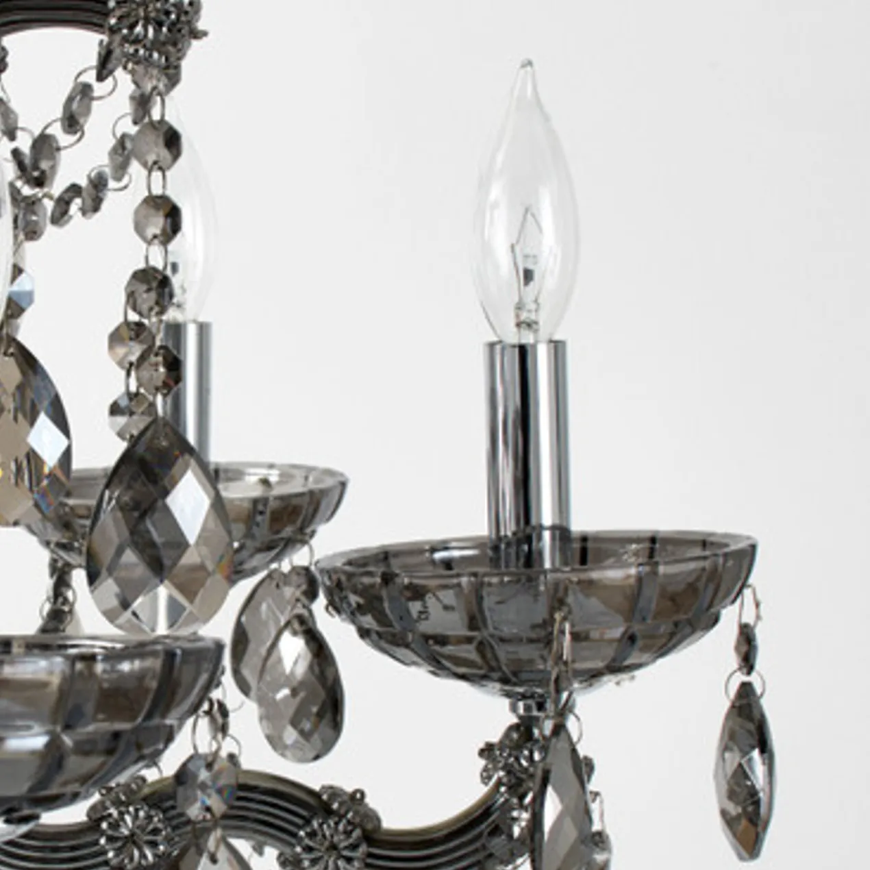 Our spectacular Mercer Chandelier delivers the ultimate in high glamour. Created entirely of reflective smoke glass to lend unparalleled sparkle and brilliance, the base is designed to reflect the romance of traditional Venetian chandeliers. The real magic happens with layers of faceted crystal swags and heavy crystal drops.