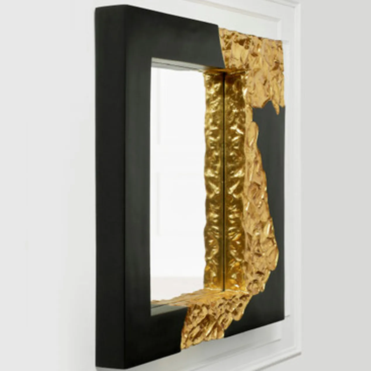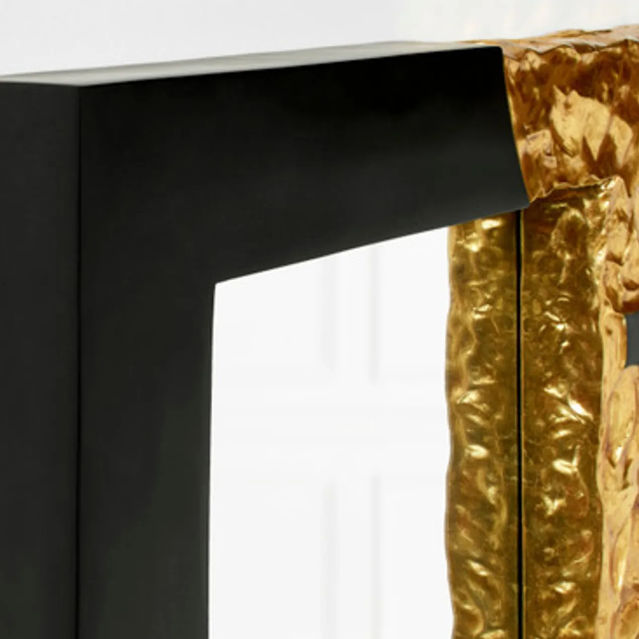Perfect for adding drama and visual interest to your space, this mirror features a matte black lacquered frame embellished with textural gold-leaf accents.