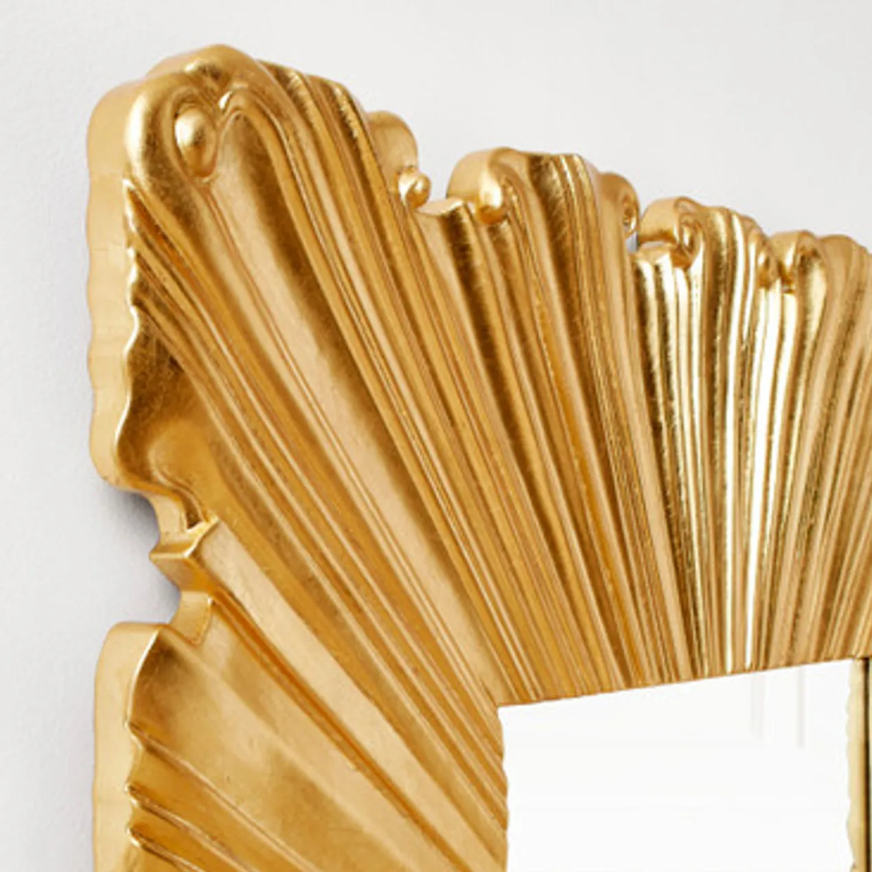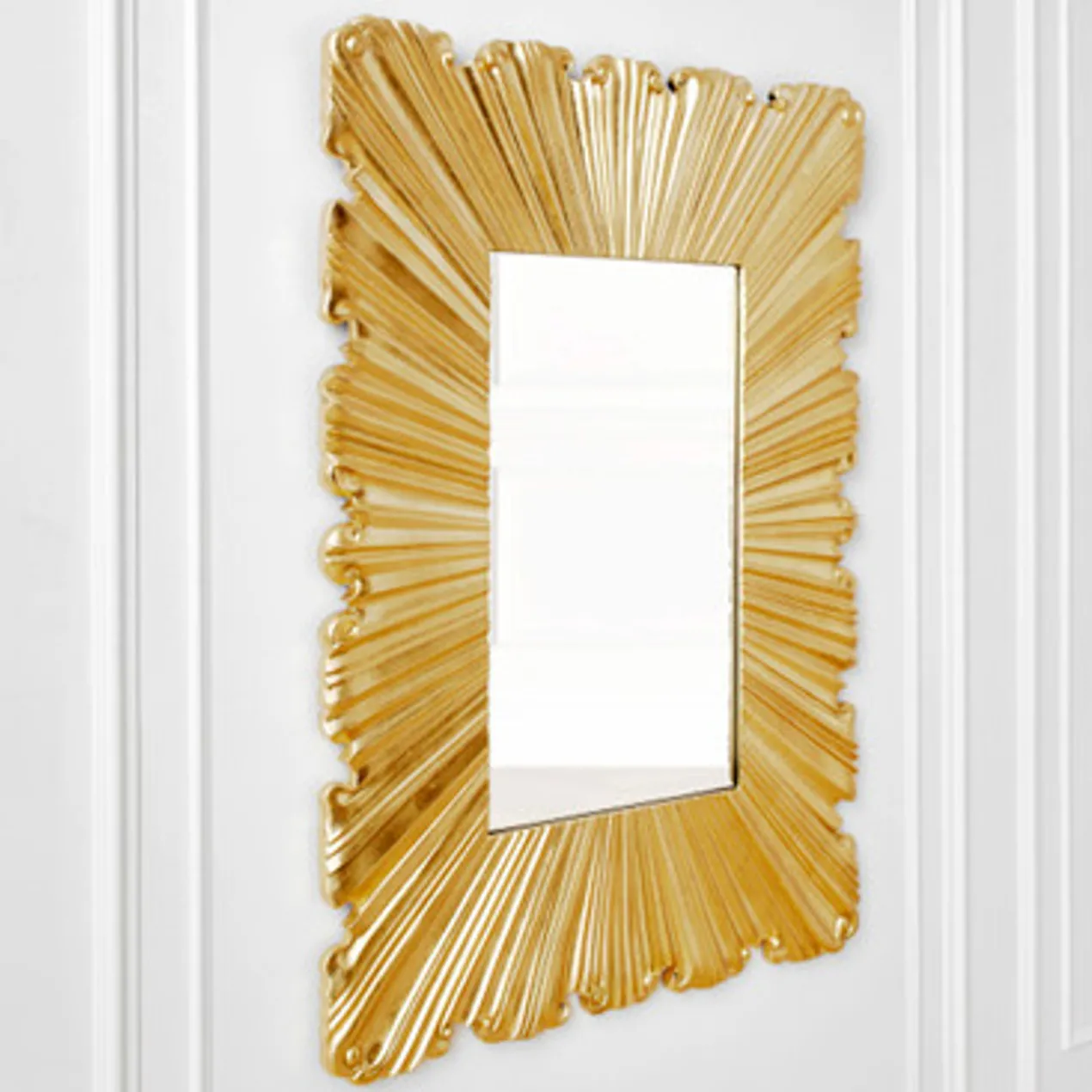A stylish focal point for any room, this wall mirror is set in a sculptural frame with a gold finish.