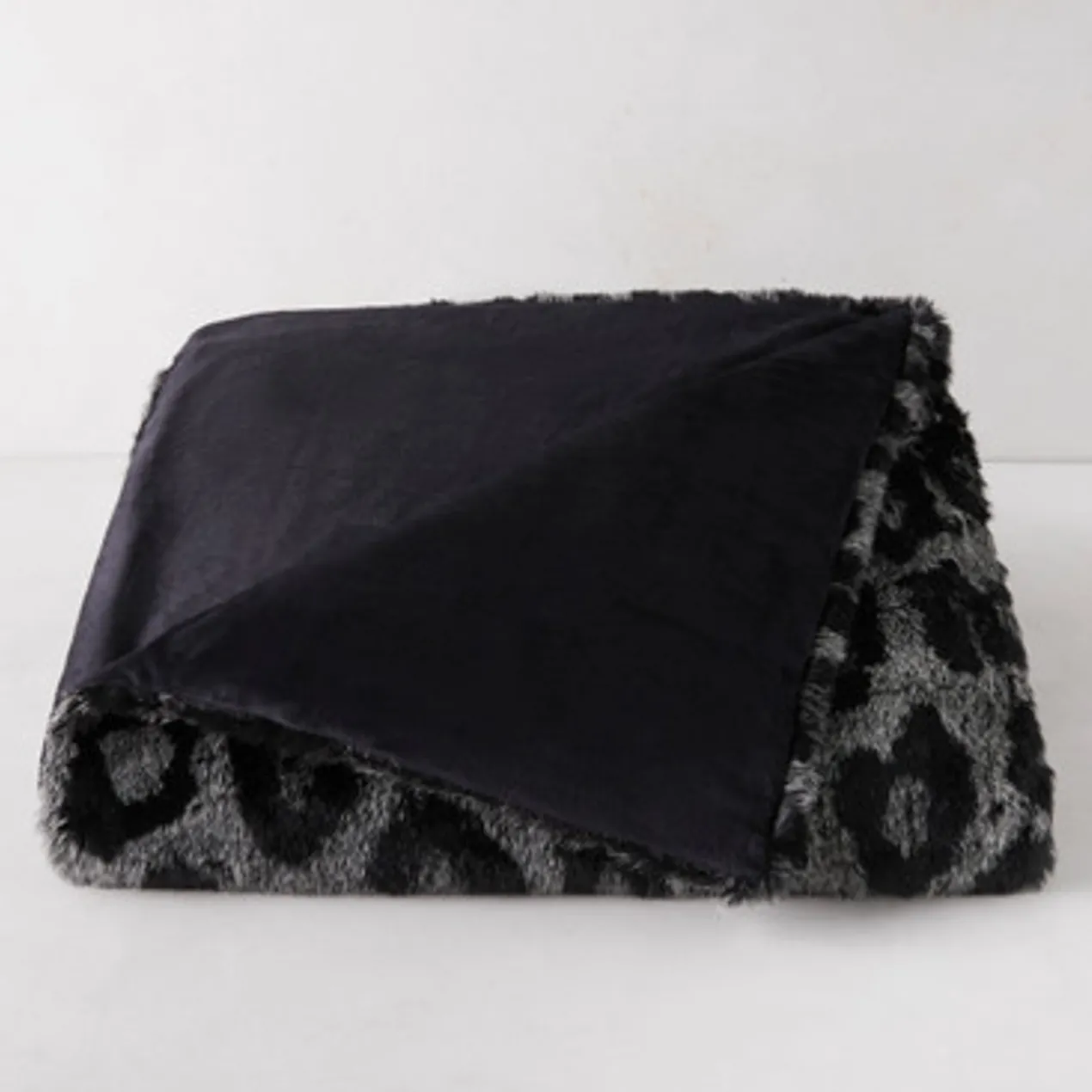 Perfectly plush, this oversize faux-fur throw brings comfort as well as style to any space with its long, fluffy pile, leopard-spot design, and equally soft velvet on the reverse.