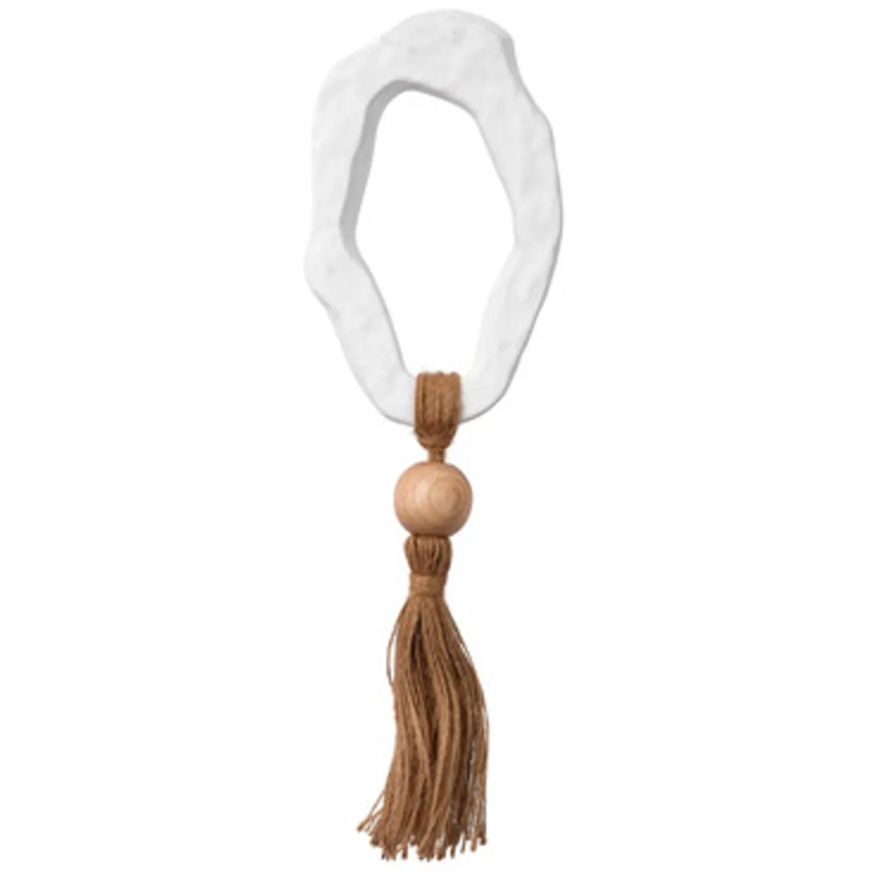 Inspired by the East, this set of three decorative hangings will add instant sophistication to any decor. These three organic, free-form resin rings will draw the eye to the expertly hand-knotted sisal rope and single natural wood bead. Soothing shades of blue, gray, and white create a feeling of calm. Generously sized, each piece is artisan crafted and each set is unique. The finish, wood grain, and exact measurements will vary.