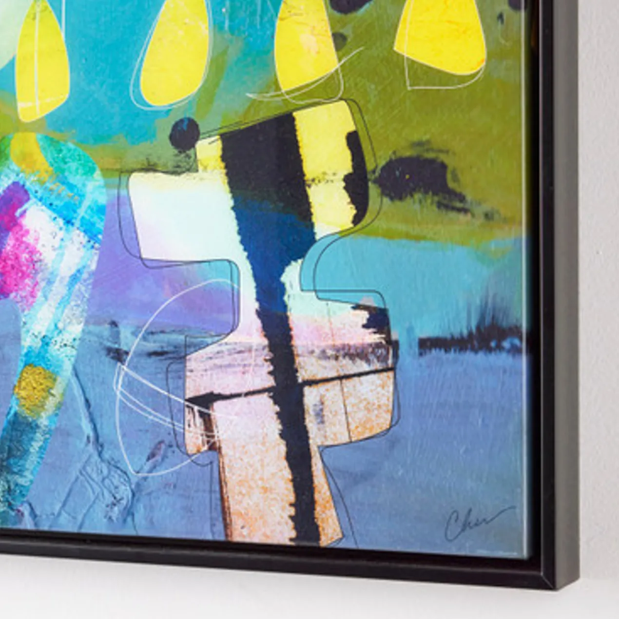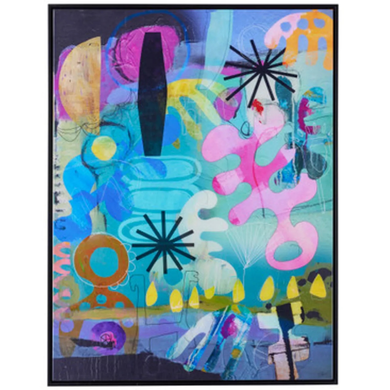 Looking for a vibrant and colorful piece for your home gallery? You’ve found it in Nikki Chu’s Detailed Vision. Featuring a sheen coat for a high-gloss appearance, this design adds loads of interest to any space. Framed in black, this piece is set to hang vertically or horizontally.