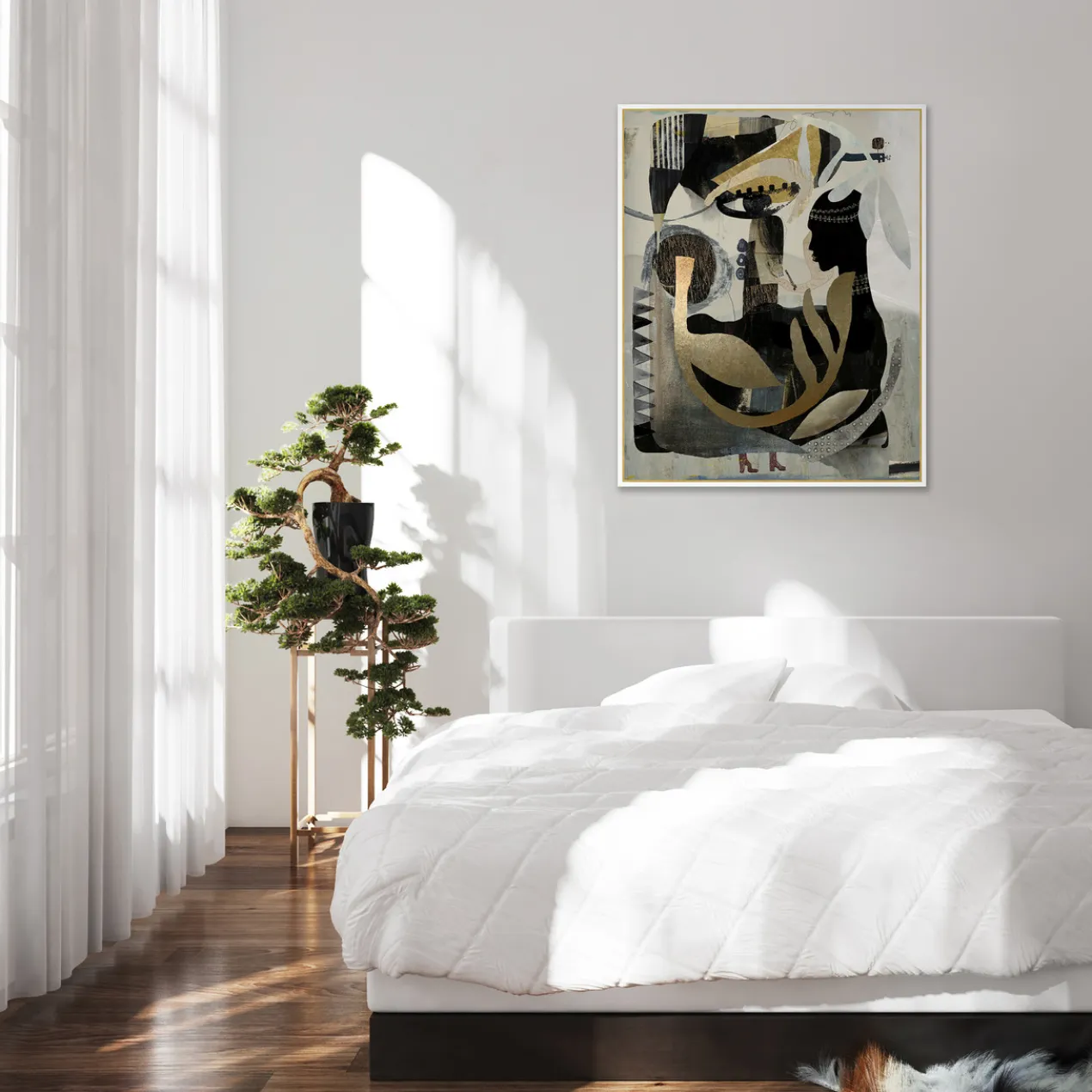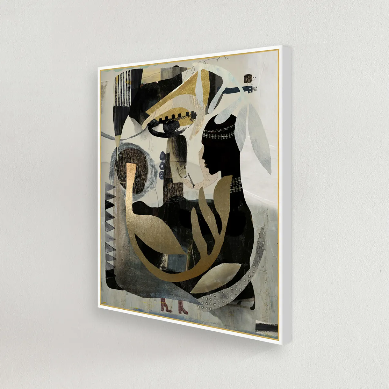 Gallery-wrapped canvas with gilded gold accents and hand-applied image brush gel finish.