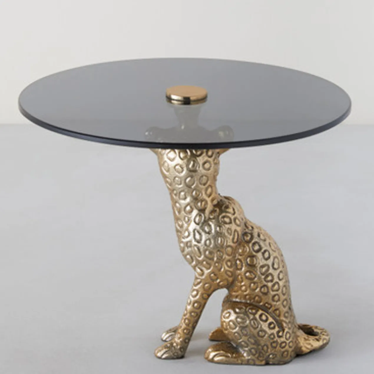 Created in collaboration with Nikki Chu, this serving stand is perched on a gleaming gold jaguar to bring wild style to your dining space.
