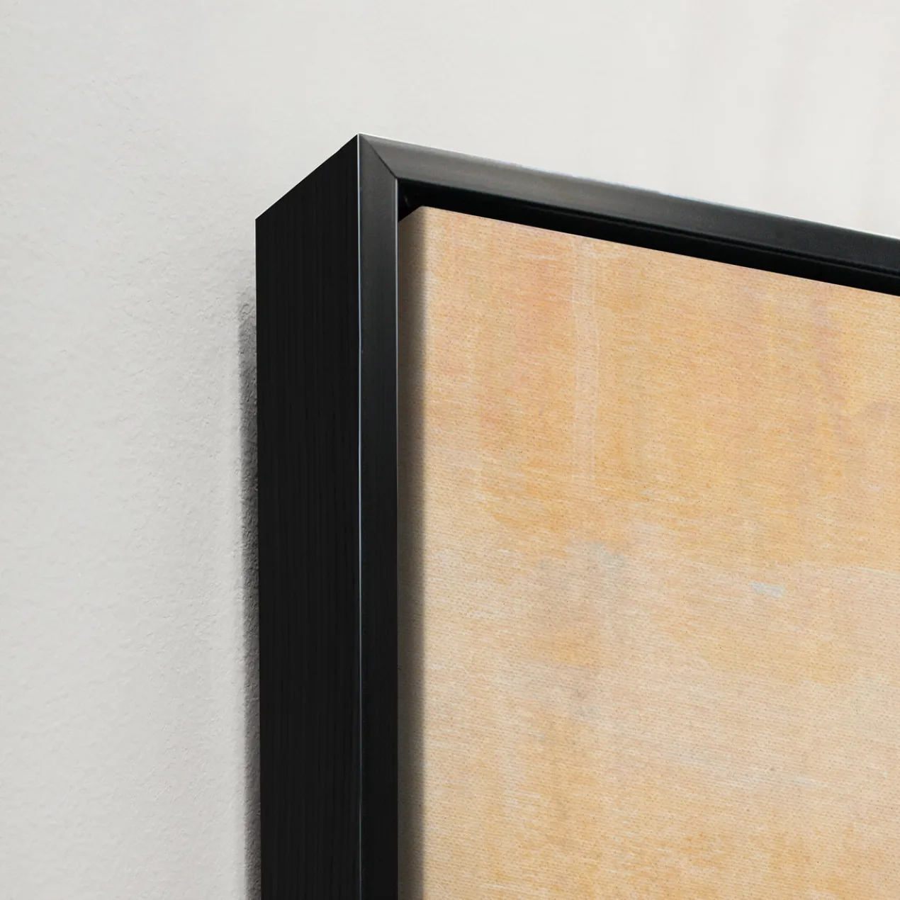 - Set in a black floater frame.