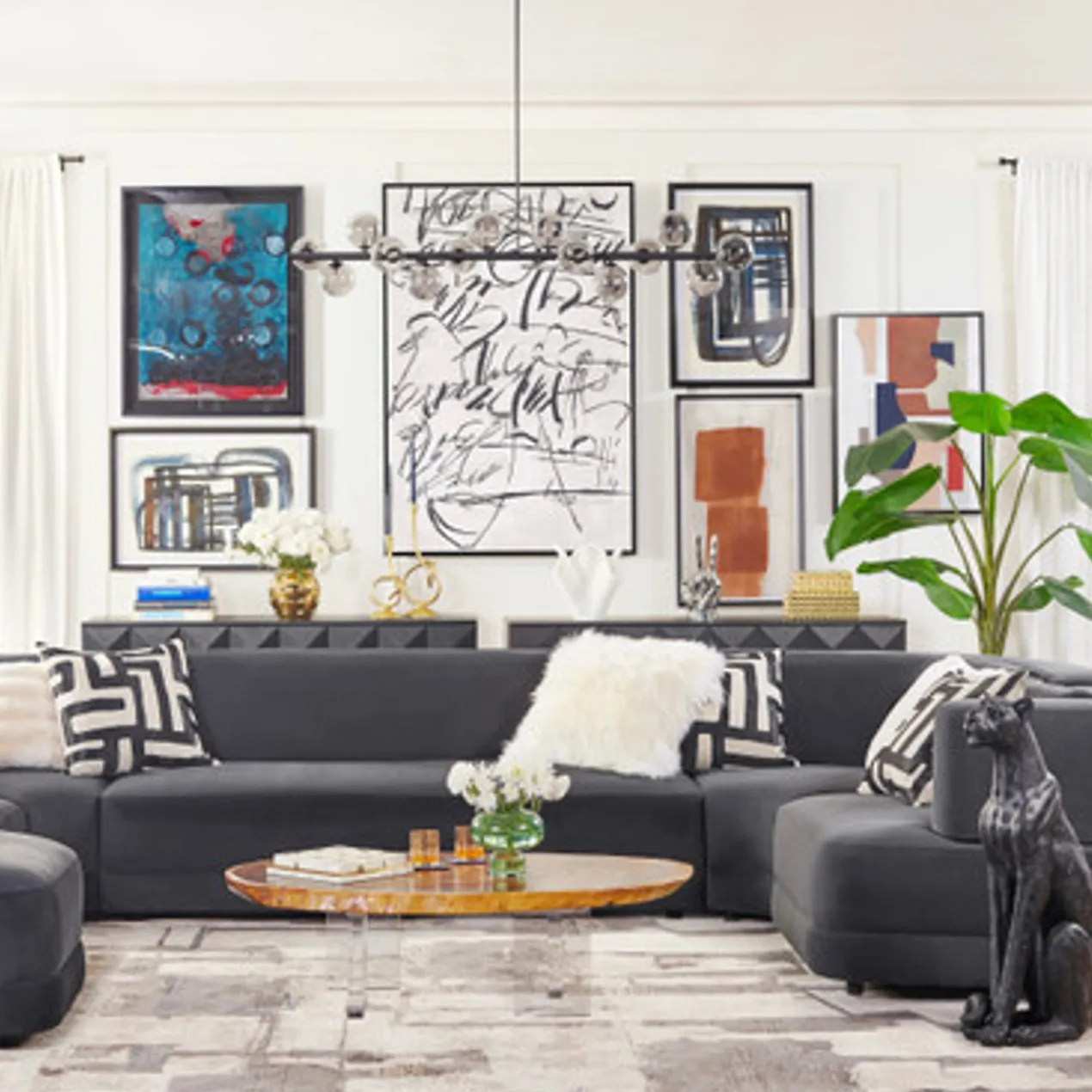 Featuring an ultramodern geometric design in a high-contrast palette, this eye-catching rug adds soft texture and visual interest to any room.