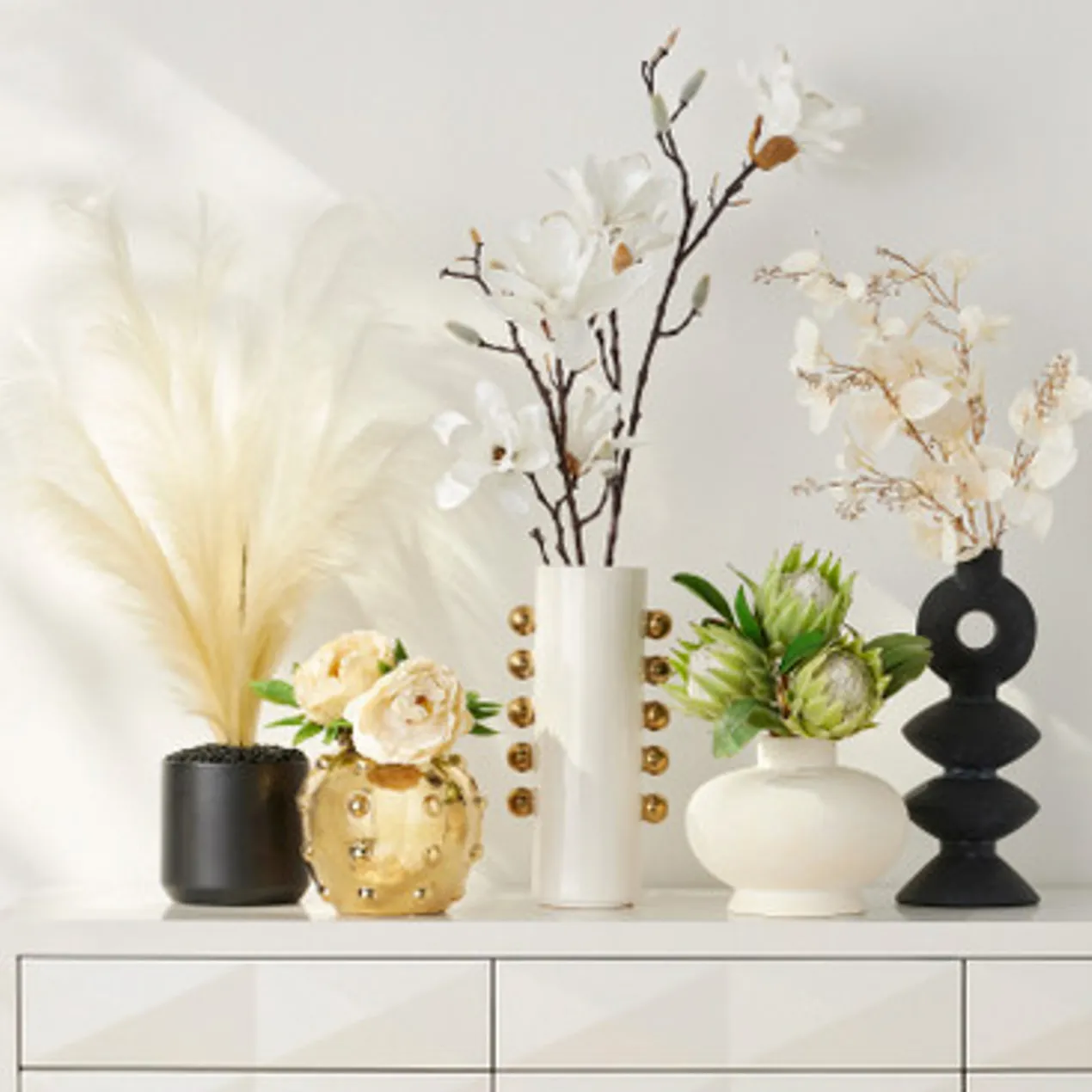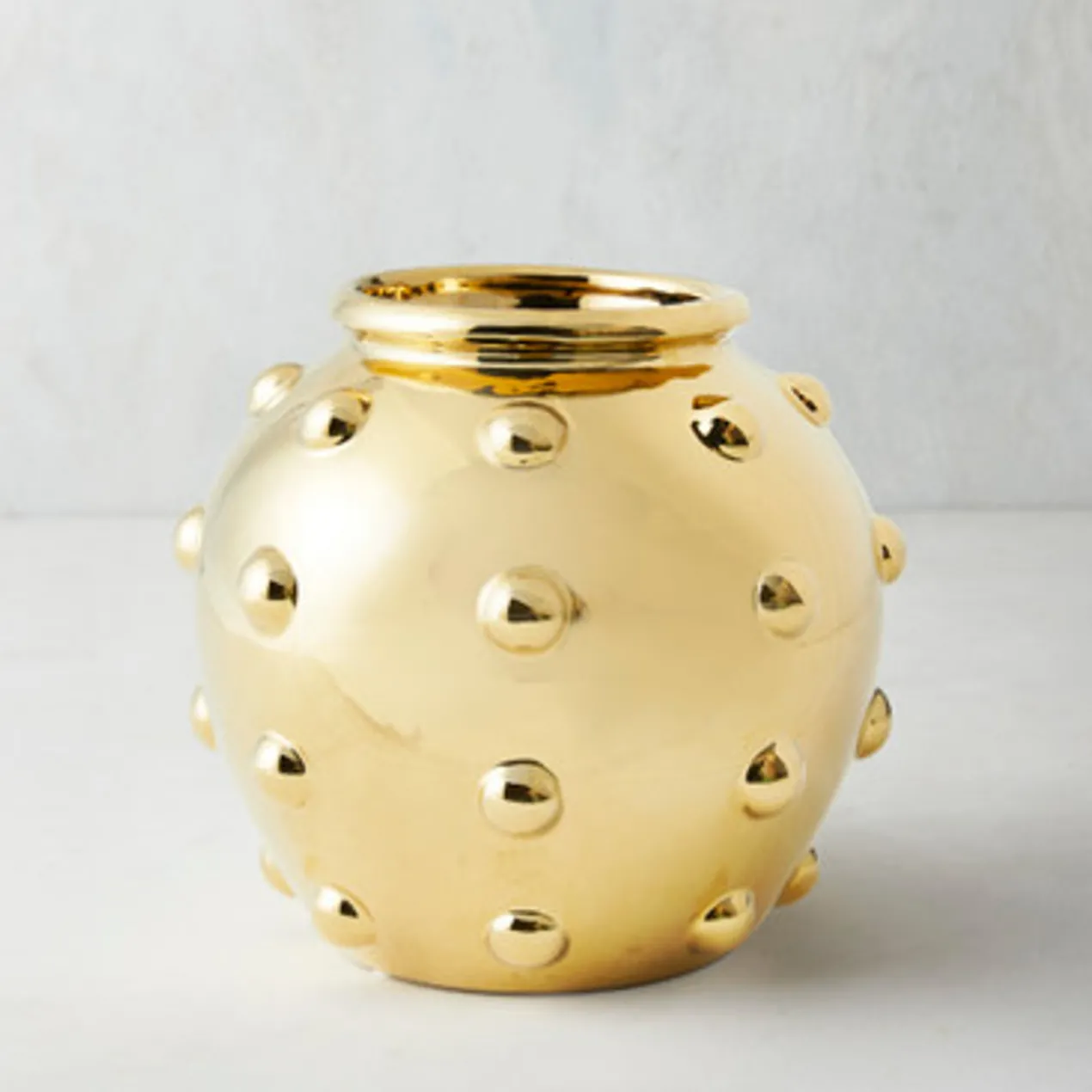 Featuring a dimensional dot design and gleaming gold finish, this ceramic vase makes a bold statement on any shelf.