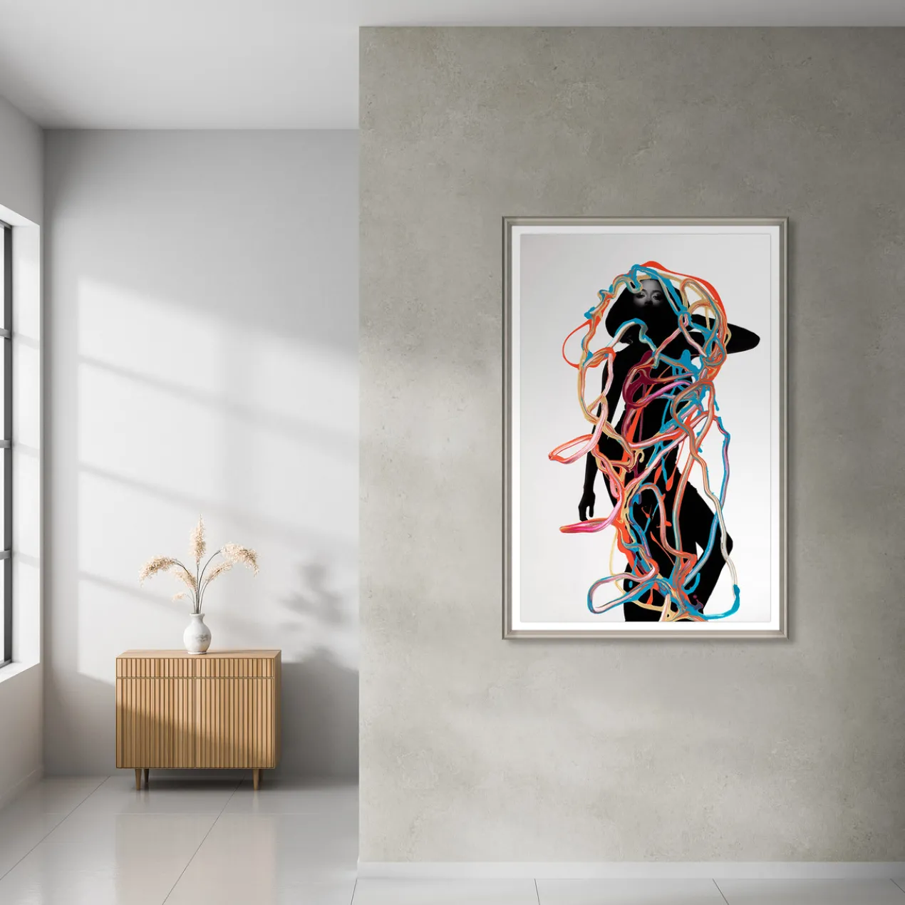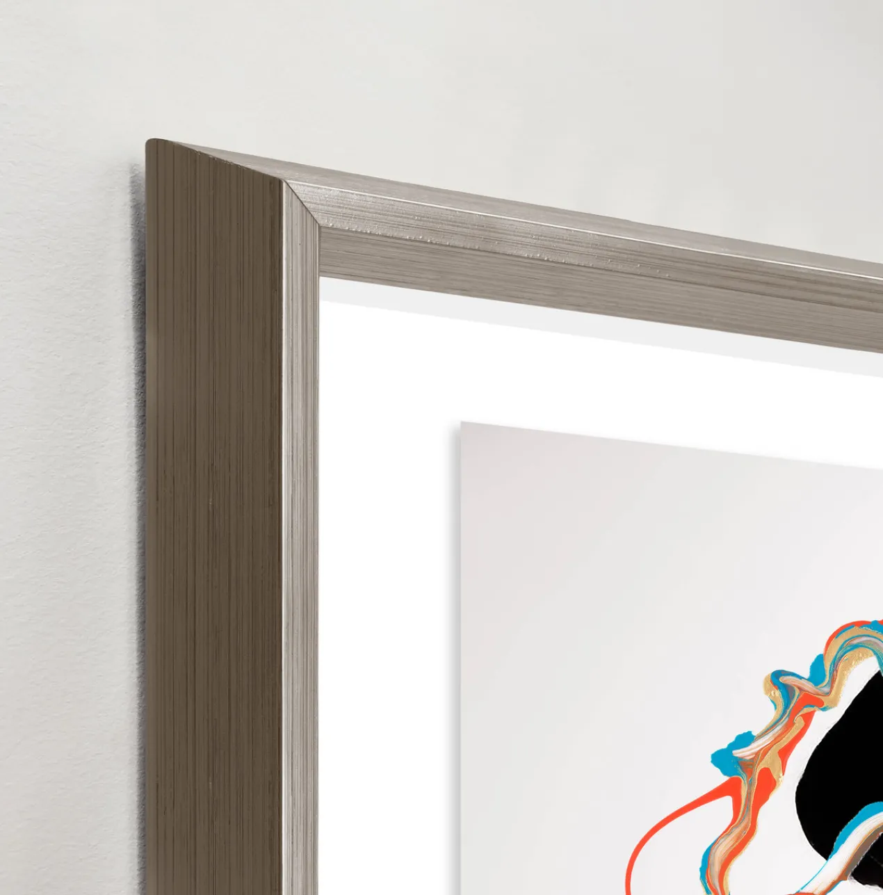 Dual stacked plexi in shadow box. Image is under acrylic glass encased in silver frame.