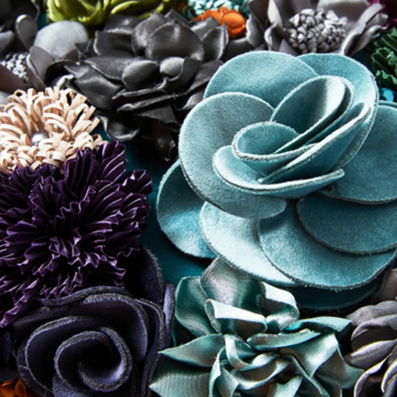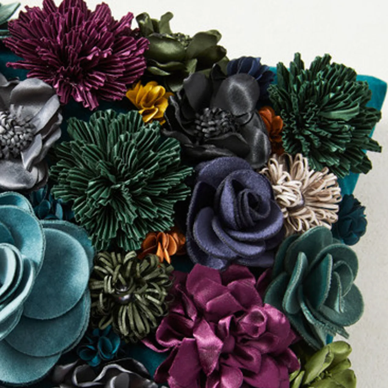 Adorned with dozens of intricately detailed blooms, this pillow brings incredible texture and whimsy to any sofa or chair. A feather insert ensures long-lasting comfort.