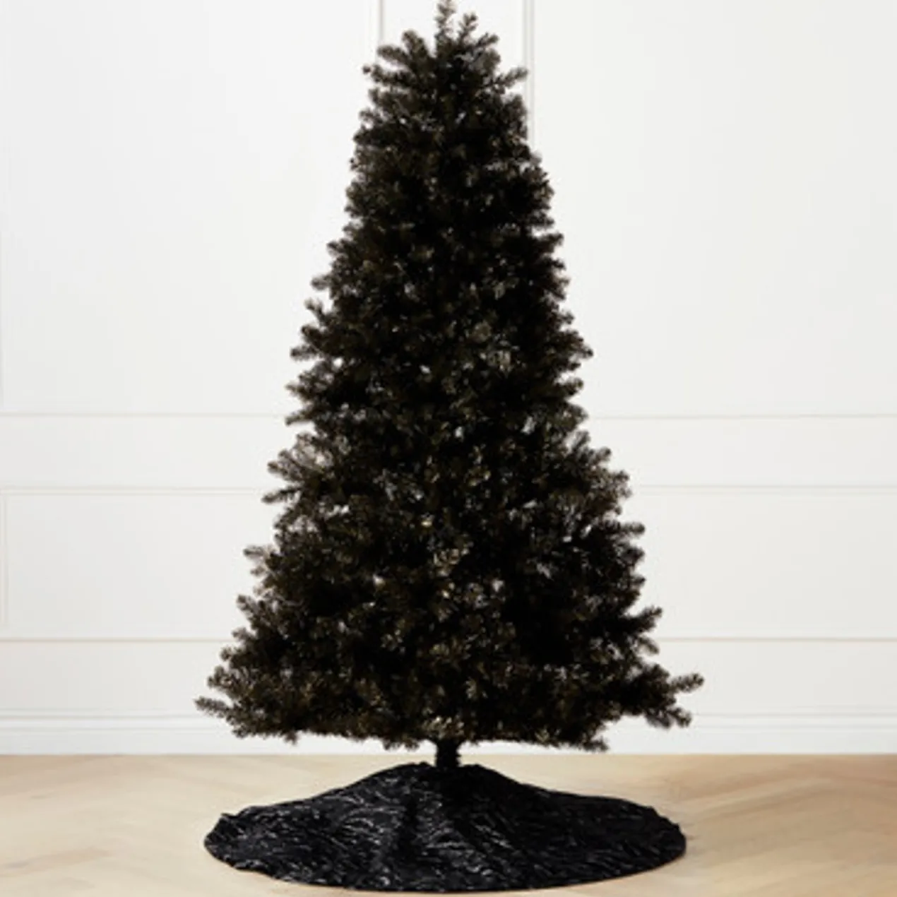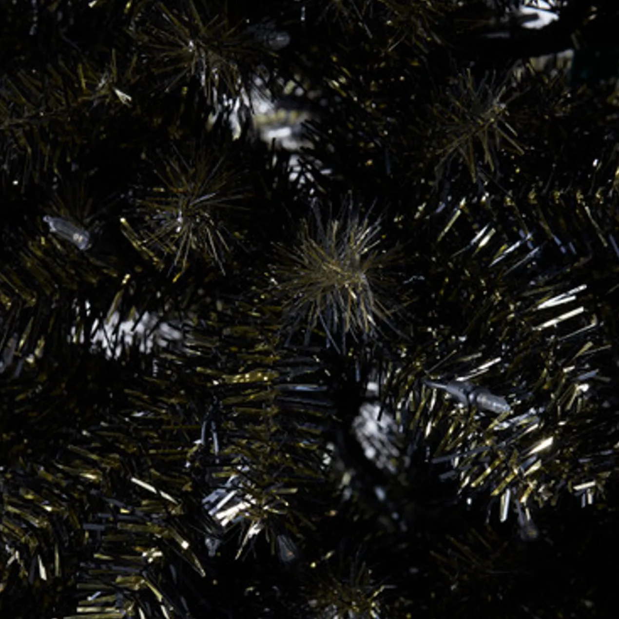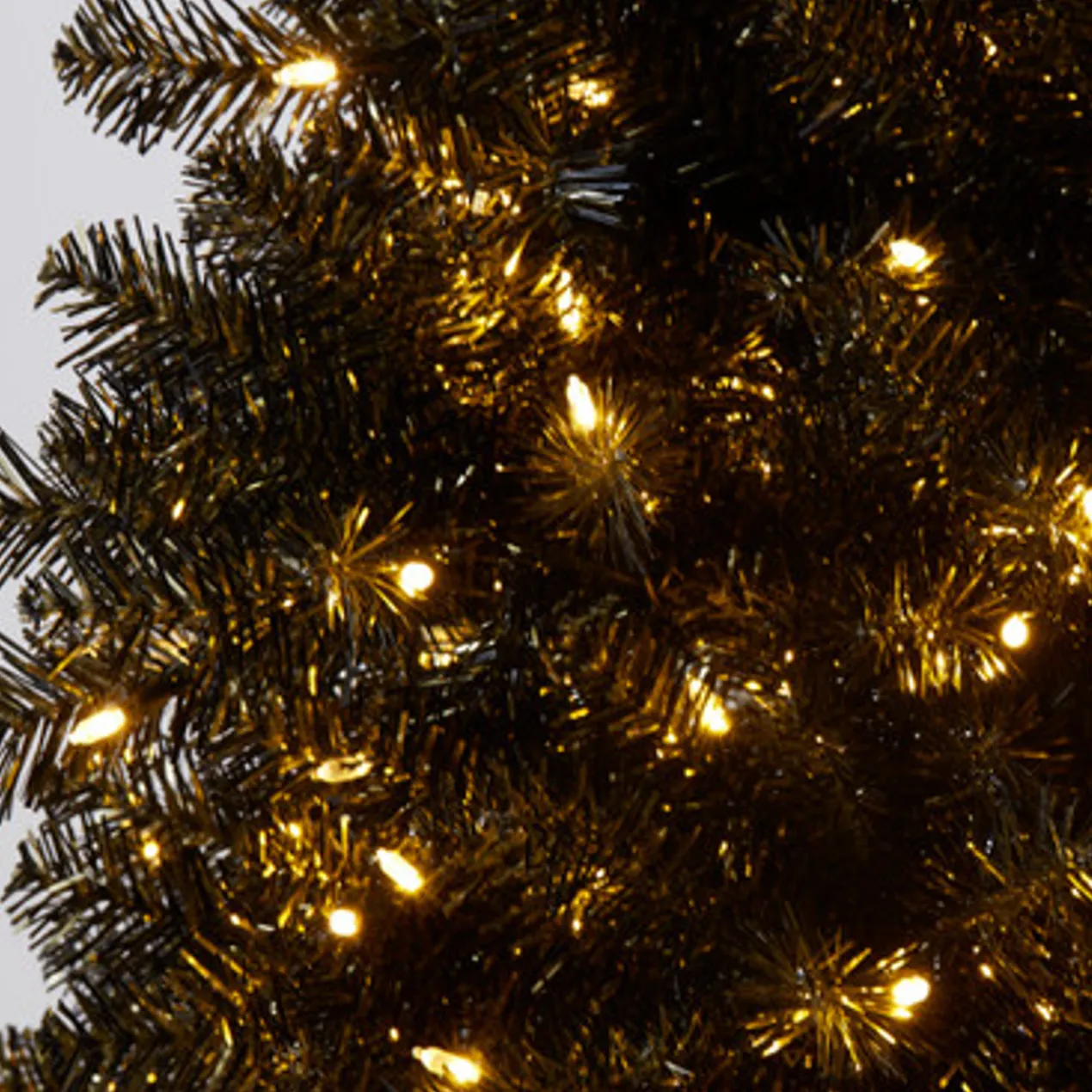 A festive addition to your holiday decor, this faux tree comes pre-lit with warm white LED bulbs and makes a bold, modern statement in black and gold.