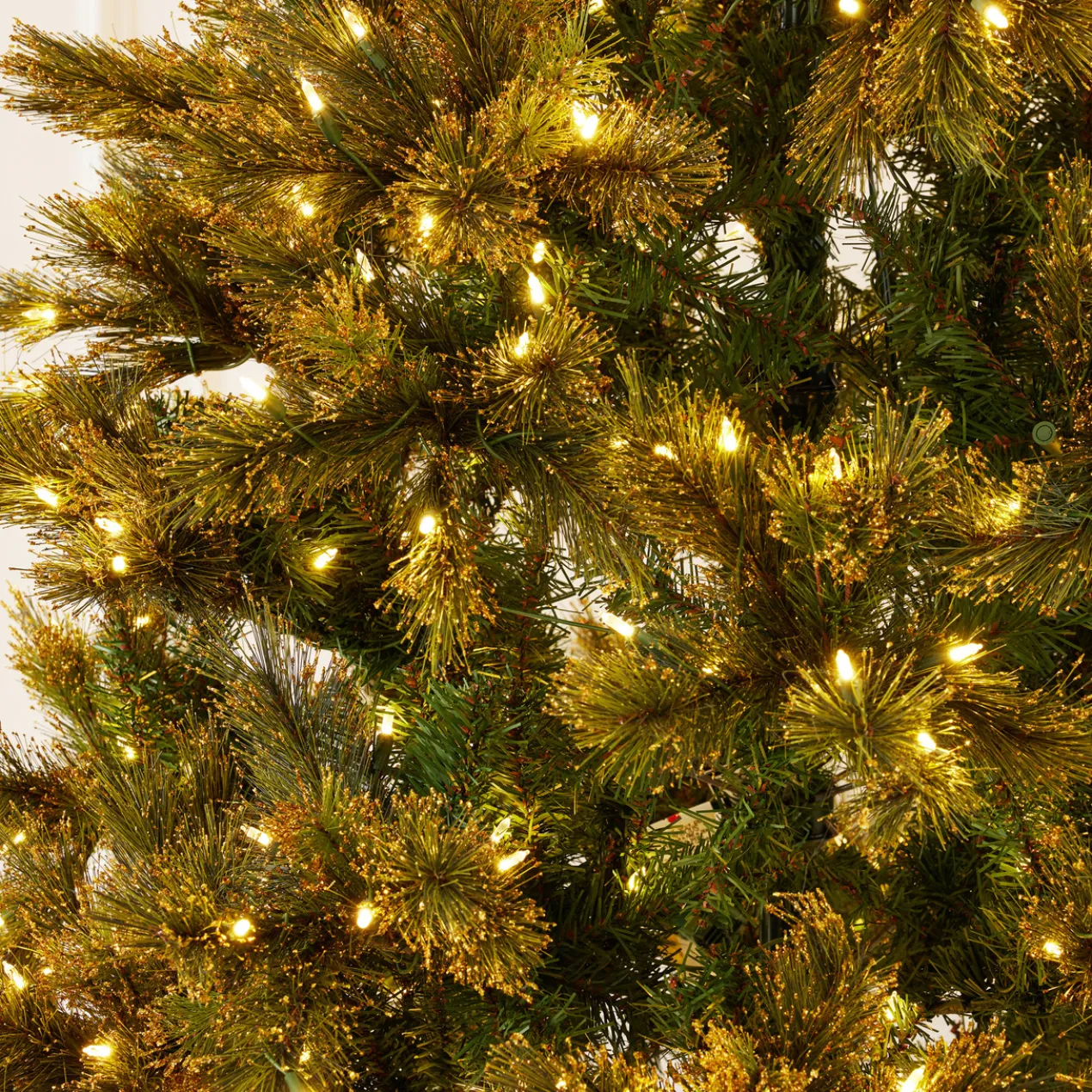 No Christmas is complete without a tree. This pre-lit option features a traditional green tree with a dusting of gold glitter flocking. Suble yet sophiscated!