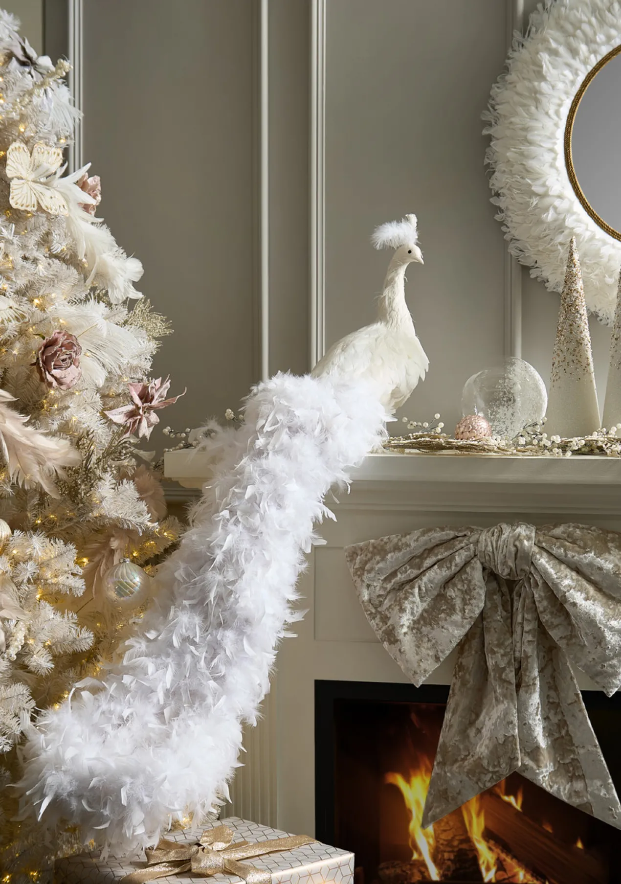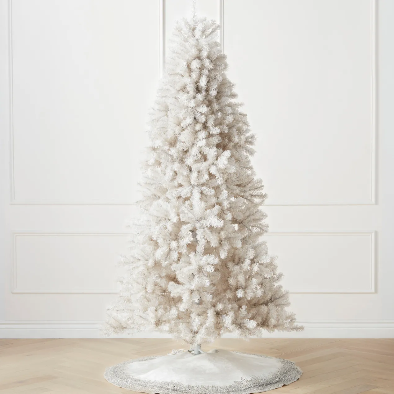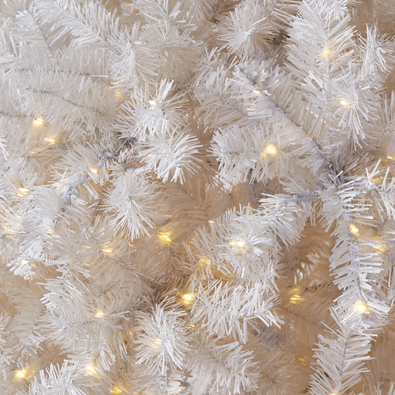 A festive addition to your holiday decor, this faux spruce tree comes pre-lit with warm white LED bulbs and makes a statement in bright white.