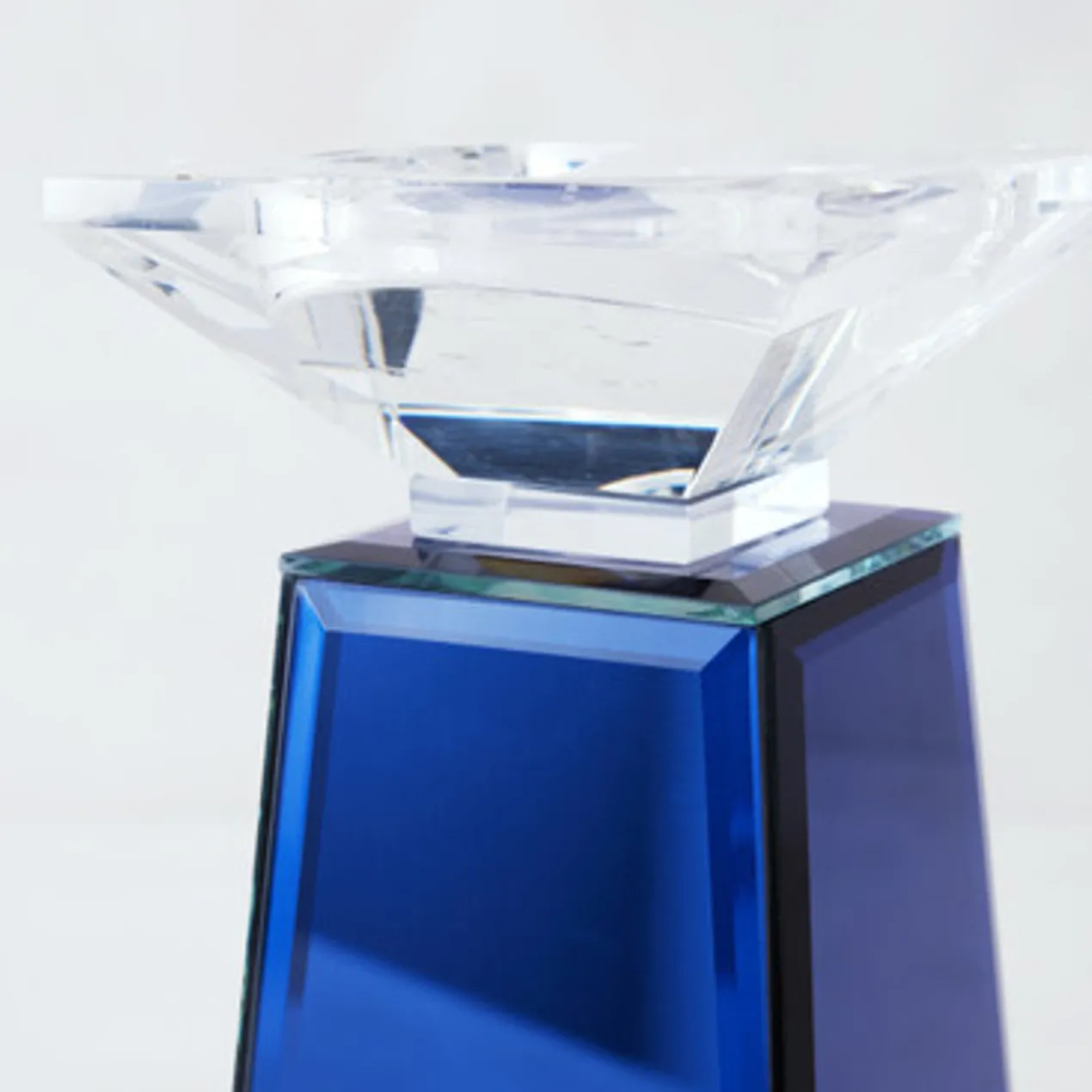 Stunningly chic, our clean-lined Prism Pillar Holders layer your décor with style and the warm illumination of candlelight. Featuring a mirrored surface on each of the four sides of the prism, a sleek glass plate tops the prism, offering a dedicated space for a pillar candle to rest.