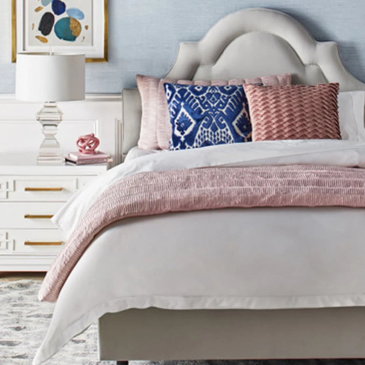 Our Savion Bedding Collection is designed with a satiny, micro-pleated polyester top, complemented by a cotton backing to create gorgeous, light-catching bedding that still breathes like a dream. Each piece is guided by hand through a sewing machine for that truly tailored touch (that’s so hard to find these days). Coordinate with other Pearl bedding like Edessa for a mix and match that is crisp and clean.